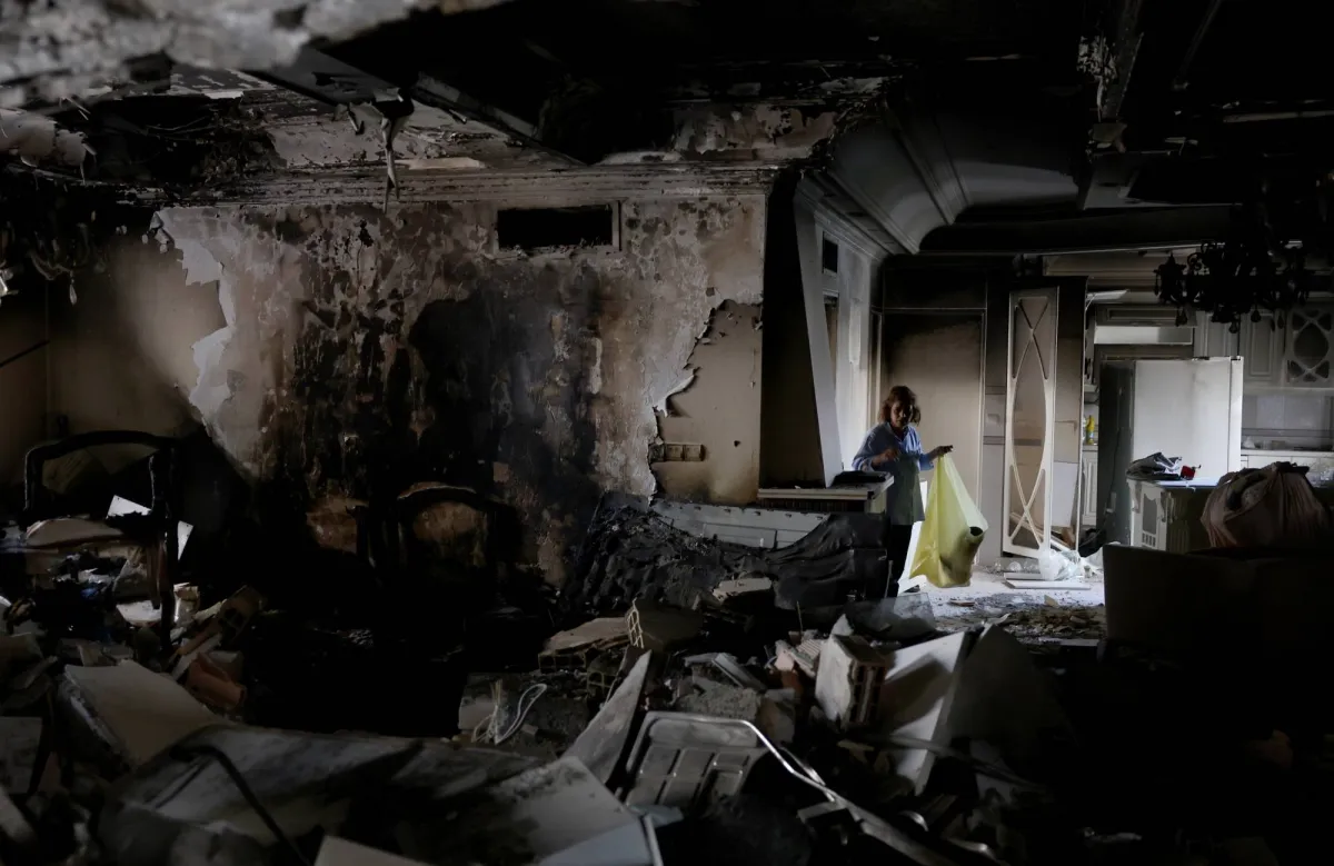إيرانية تتفقد الأربعاء التلفيات التي لحقت بمنزلها نتيجة ضربة جوية إسرائيلية في طهران (إ.ب.أ)