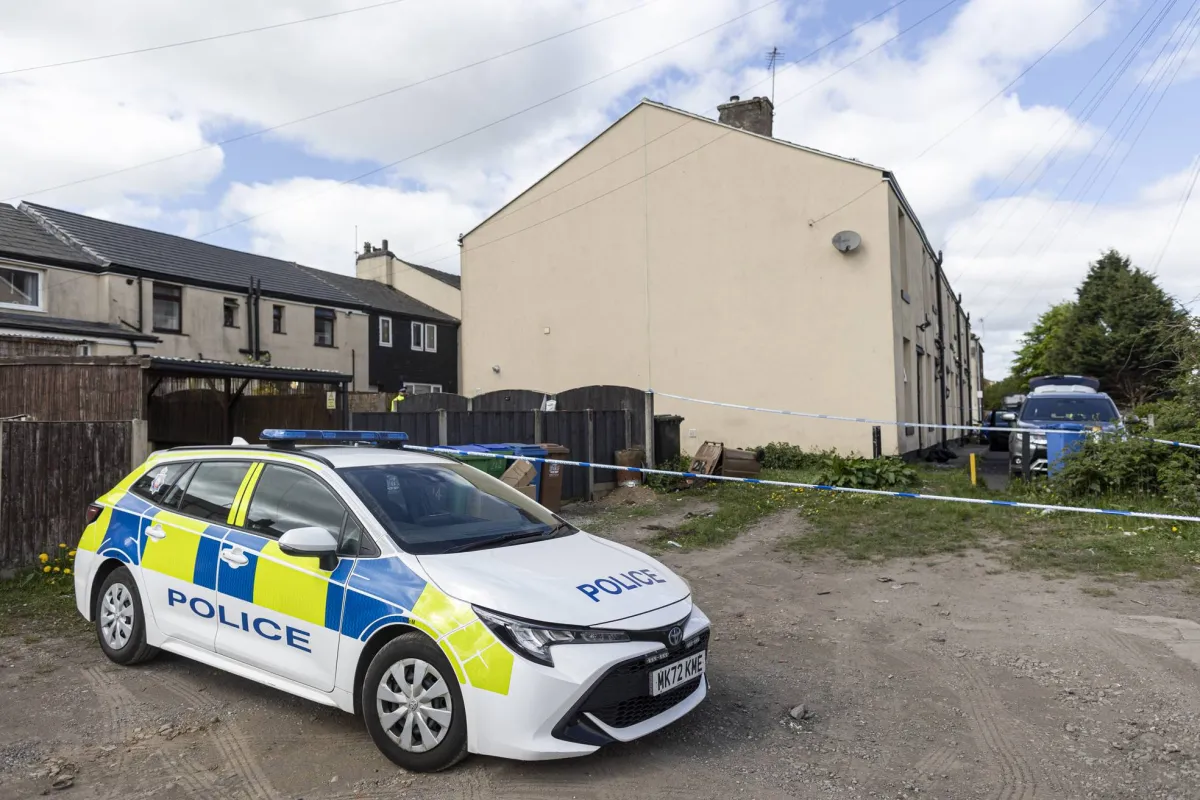 الشرطة البريطانية تطوّق منزلاً خلال اعتقالِ إيراني ببلدة روتشديل قرب مانشستر في مايو الماضي (غيتي)