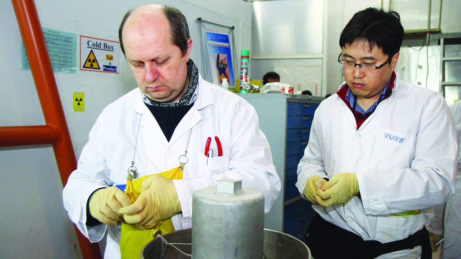 مفتش من «الوكالة الدولية للطاقة الذرية» يجري فحصاً داخل محطة «نطنز» النووية يوم 20 يناير 2014 (أرشيفية - أ.ف.ب)