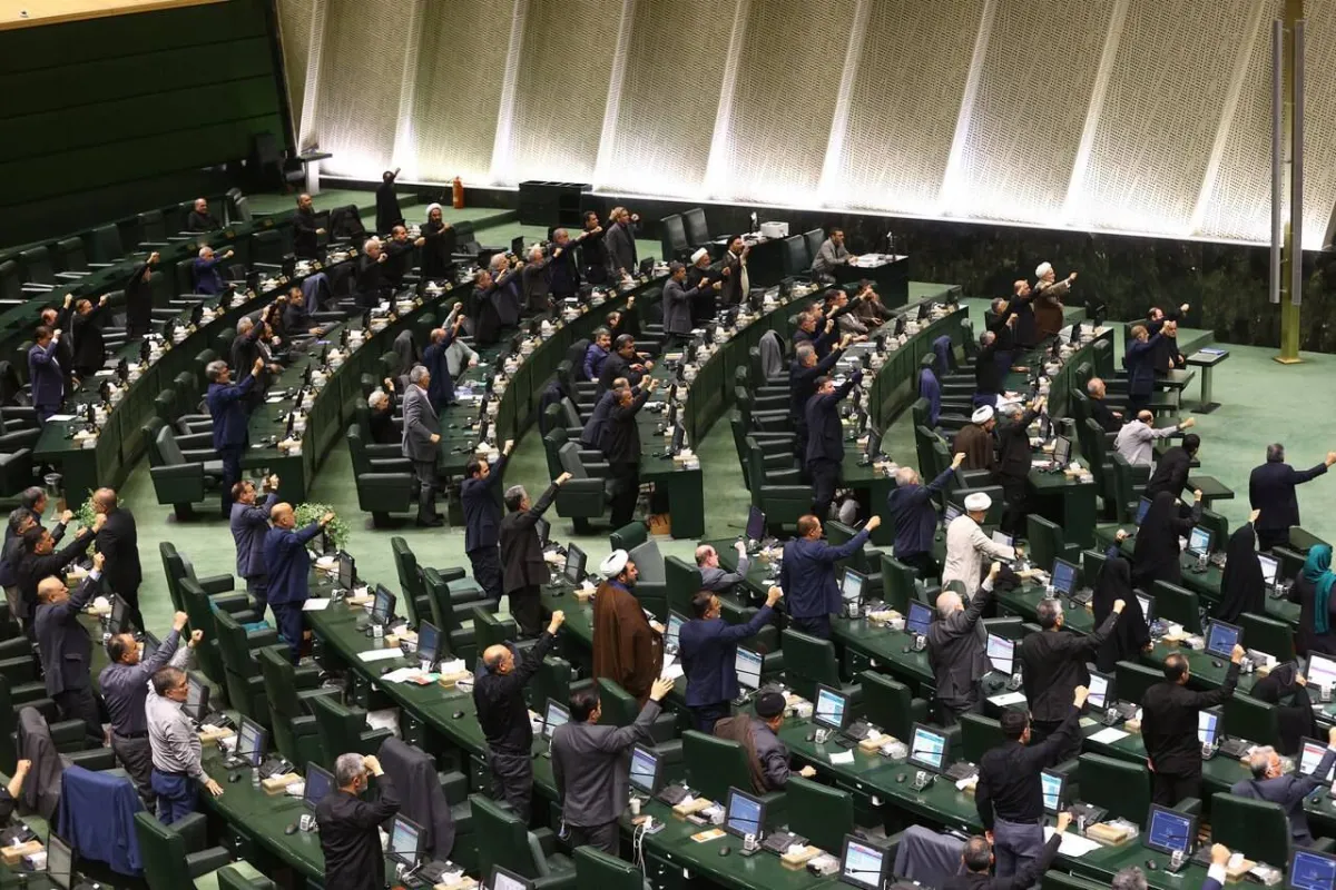 مشرّعون إيرانيون يردّدون هتافات مندِّدة بإسرائيل في جلسة عامة الأسبوع الماضي (موقع البرلمان)