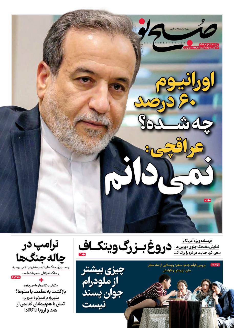 صحيفة «صبح نو» المقربة من «الحرس الثوري» تعنون على رد عراقجي بشأن مصير اليورانيوم المخصب: «لا أعلم»