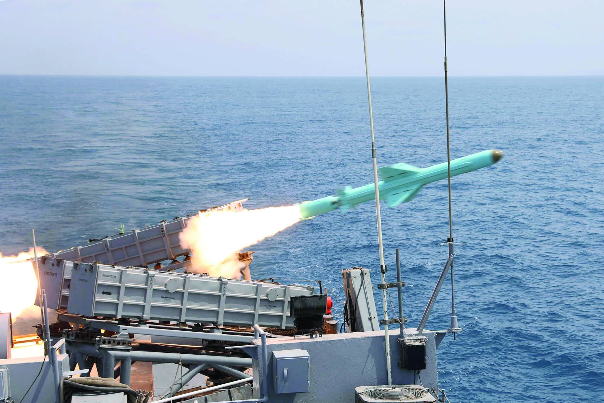 صورة نشرها موقع الجيش الإيراني تُظهر صاروخاً يُطلق من إحدى القطع البحرية خلال مناورات في خليج عُمان