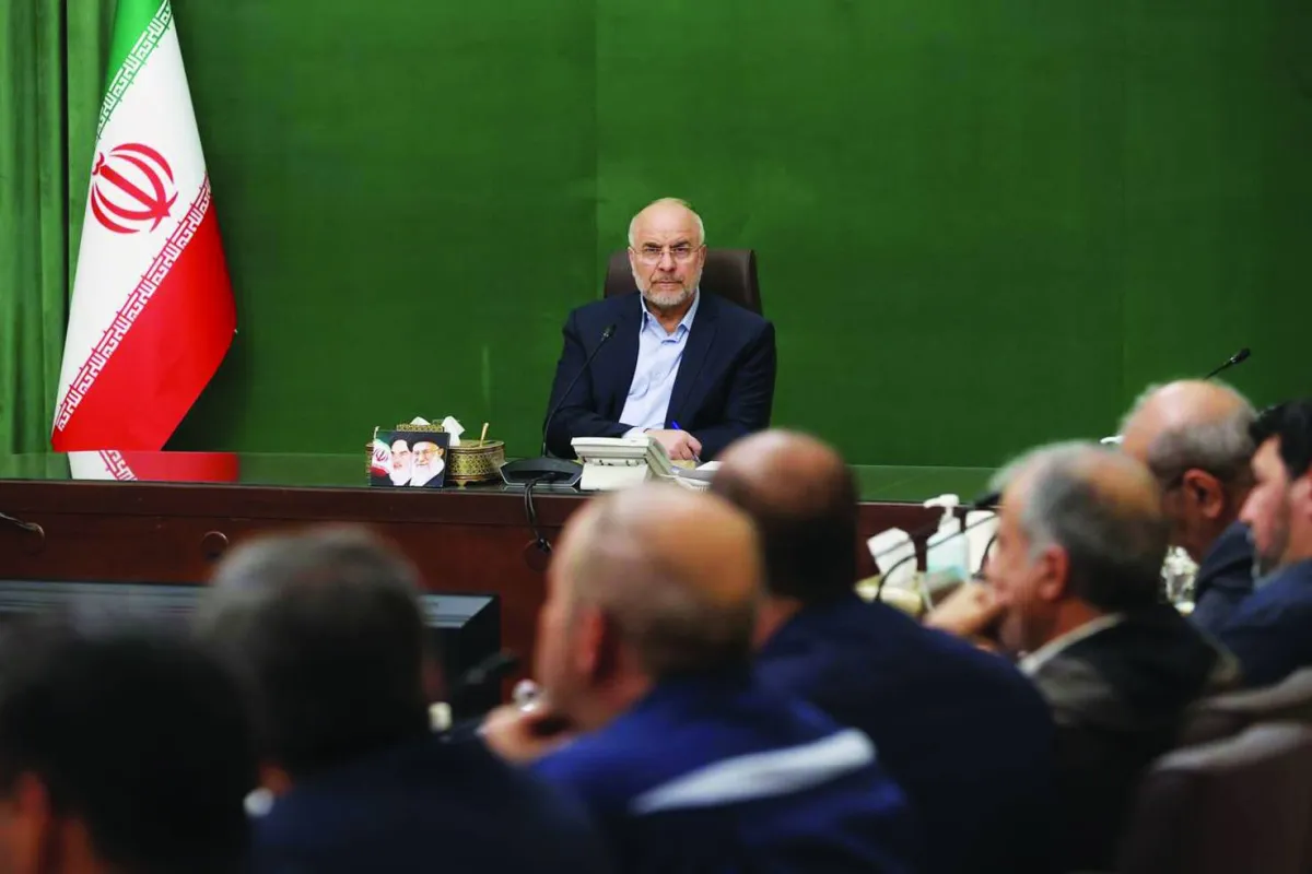 قاليباف يتحدث في اجتماع مع مسؤولين الأسبوع الماضي (البرلمان الإيراني)