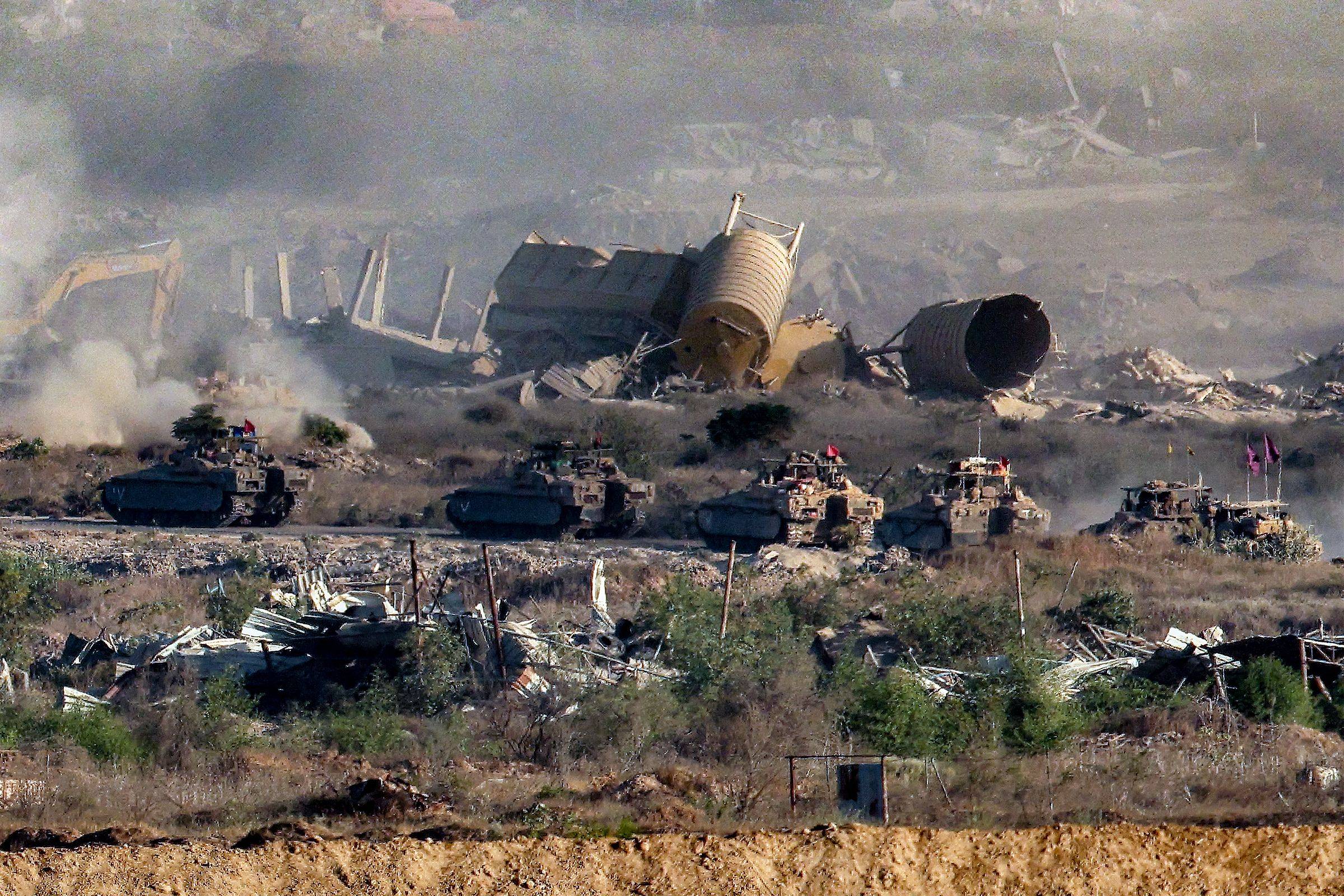 مركبات عسكرية إسرائيلية تنتشر على طول الحدود مع قطاع غزة الجمعة (أ.ف.ب)