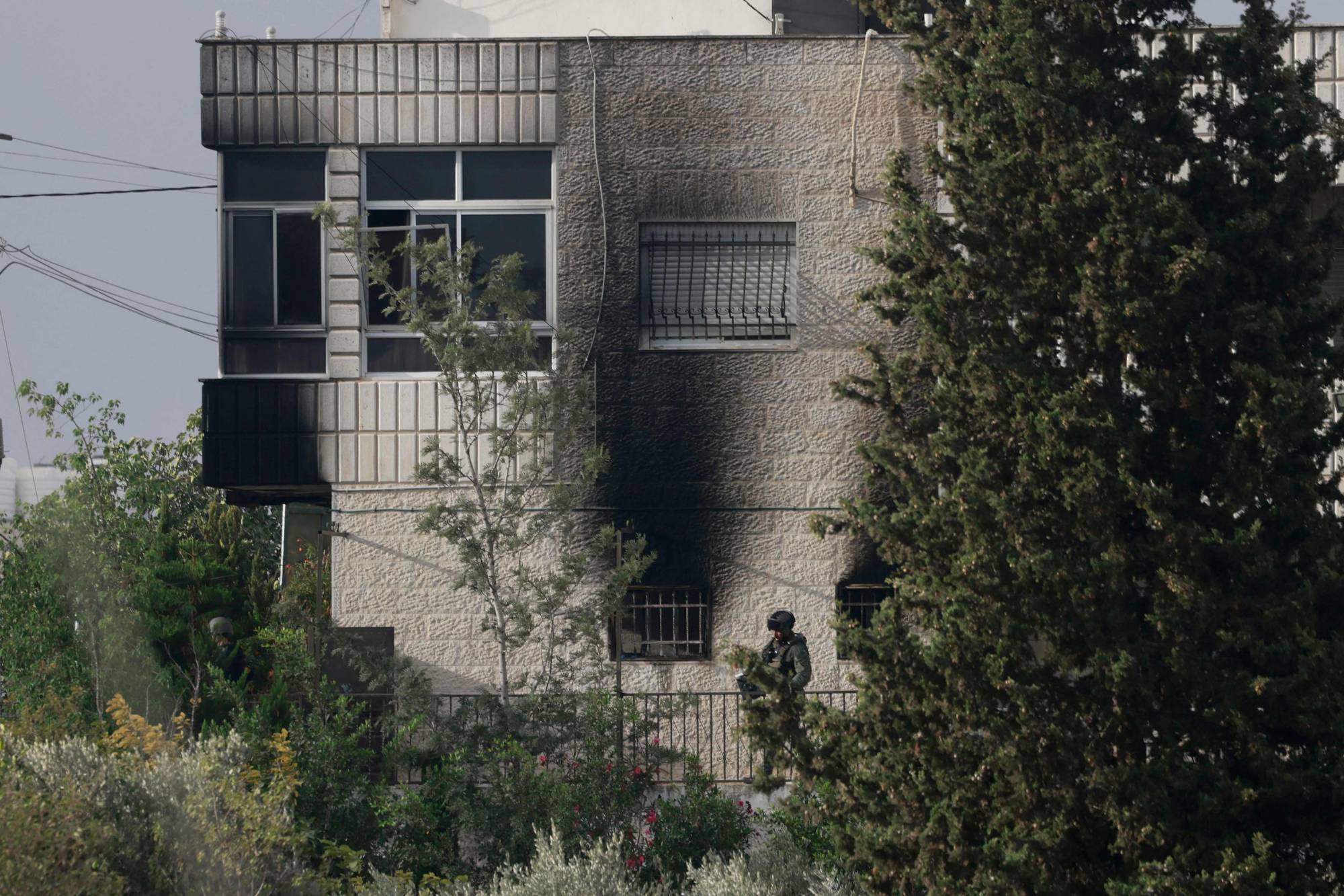 جندي إسرائيلي يتفقد مبنى قال الجيش إن مشتبهاً بهم فلسطينيين يختبئون فيه أثناء عملية بالقرب من رام الله (أ.ف.ب)