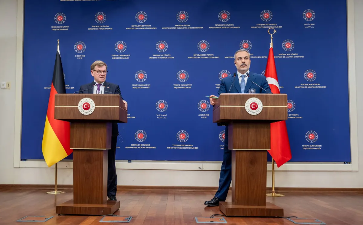 وقال وزير الخارجية التركي هاكان فيدان، في مؤتمر صحافي مع نظيره الألماني، يوهان فاديفول، عقب محادثاتهما في أنقرة الجمعة: «أكدنا خلال المحادثات أن الخطوات التي تتخذها أوروبا، وبخاصة ألمانيا، بشأن فلسطين وغزة، ستكون ذات قيمة كبيرة».