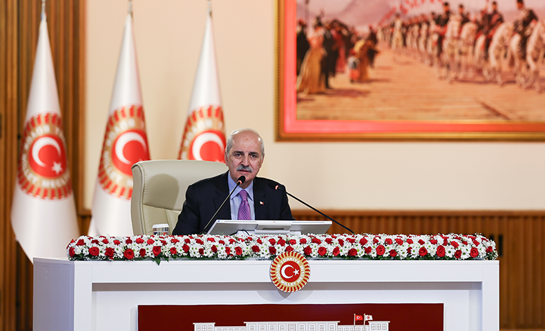 في الوقت ذاته، قال رئيس البرلمان التركي، نعمان كورتولموش، الذي يترأس أيضاً «لجنة التضامن الوطني والأخوة والديمقراطية» المعنية بوضع الأساس القانوني لنزع أسلحة حزب «العمال الكردستاني» وعملية السلام في إطار مبادرة «تركيا خالية من الإرهاب» إنه مع التخلي التام عن السلاح، سندخل عصراً جديداً لا يُناقش فيه سوى الديمقراطية والفكر.