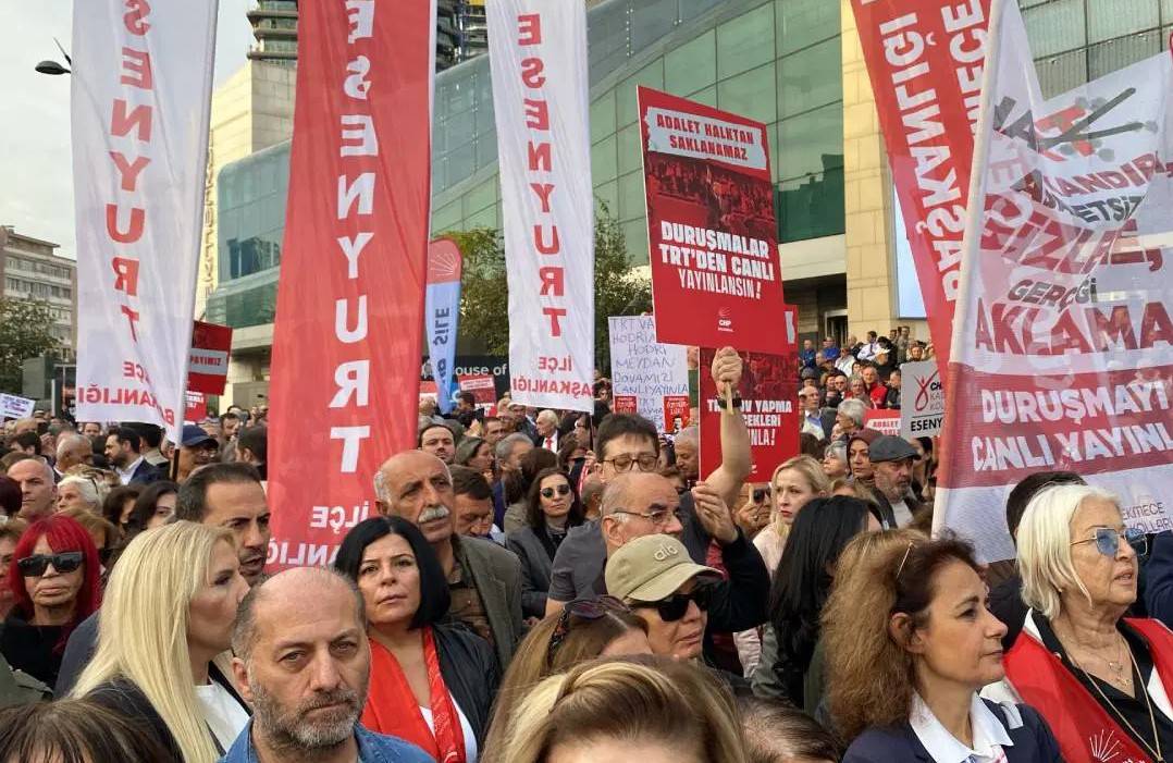 في الوقت ذاته، منعت الشرطة في إسطنبول مسيرة لحزب «الشعب الجمهوري»، أكبر أحزاب المعارضة، إلى المقر الإقليمي لتلفزيون الدولة «تي آر تي»؛ للمطالبة ببث محاكمة رئيس بلدية إسطنبول المحتجَز، أكرم إمام أوغلو على الهواء.