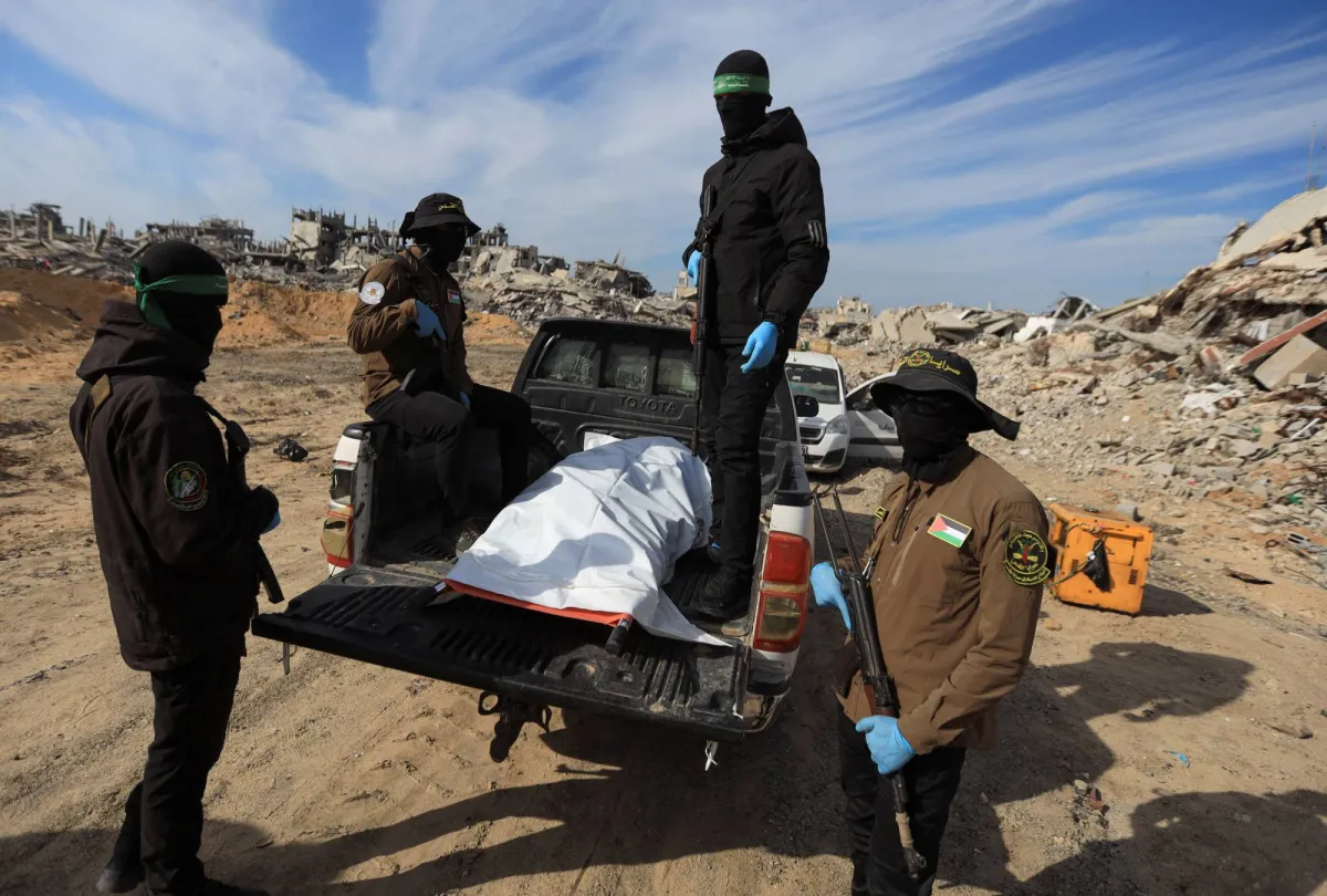 إلى الآن، أعادت الحركة 46، بما في ذلك جثة جندي قُتل واحتجز جثمانه لأكثر من عقد. والجثتان المتبقيان في القطاع المدمر هما للإسرائيلي ران غفيلي والعامل التايلاندي سودثيساك رينثالاك.