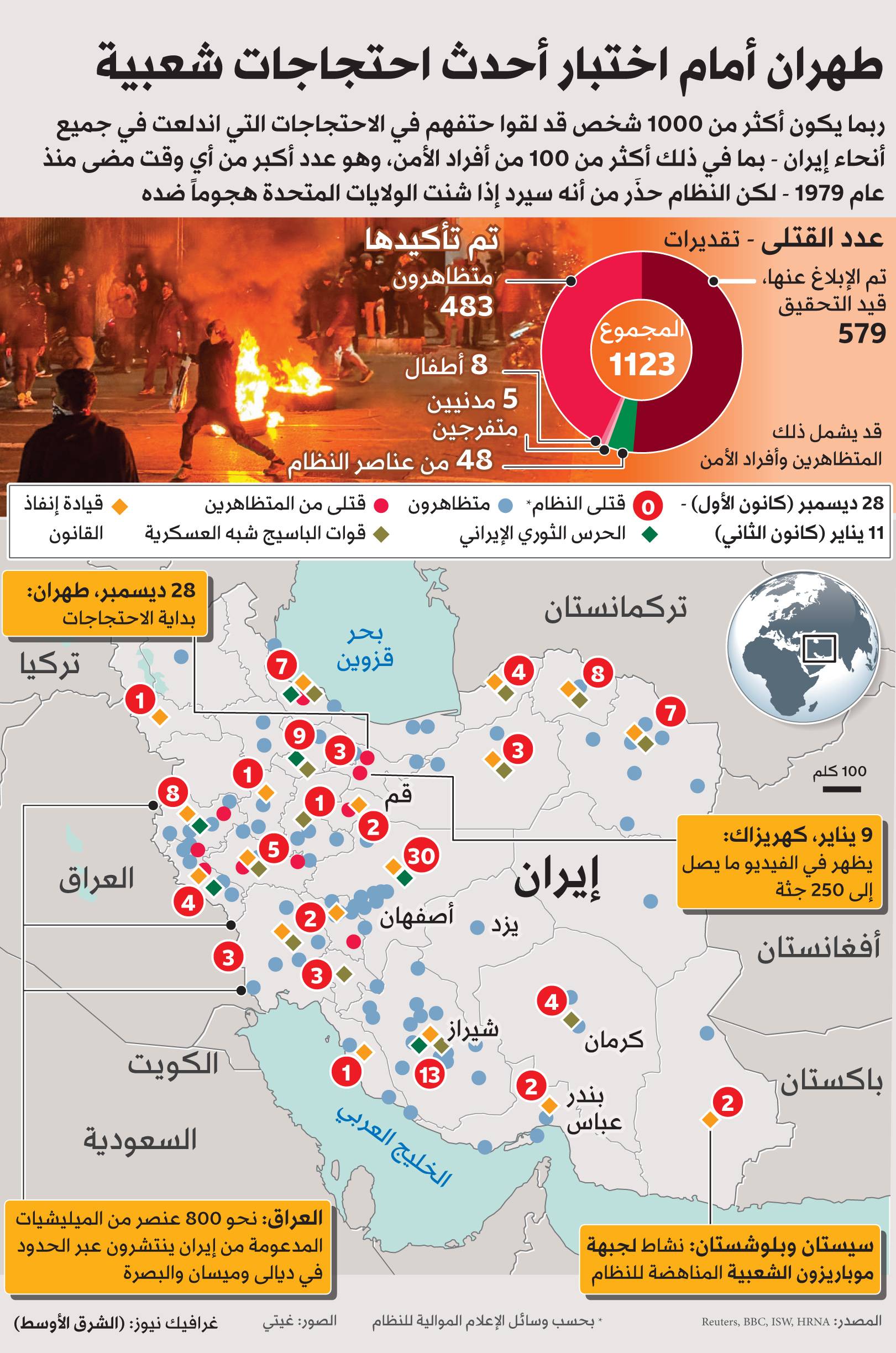 تأتي المواقف الدولية المتصاعدة إزاء إيران على خلفية احتجاجات واسعة دخلت أسبوعها الثالث، وسط حصيلة بشرية مرتفعة وفق منظمات حقوقية. وقالت هرانا إنها تحققت من مقتل 572 شخصاً منذ بدء الاحتجاجات في 28 ديسمبر (كانون الأول)، بينهم 503 متظاهرين و69 من أفراد قوات الأمن، إضافة إلى اعتقال نحو 10,694 شخصاً.