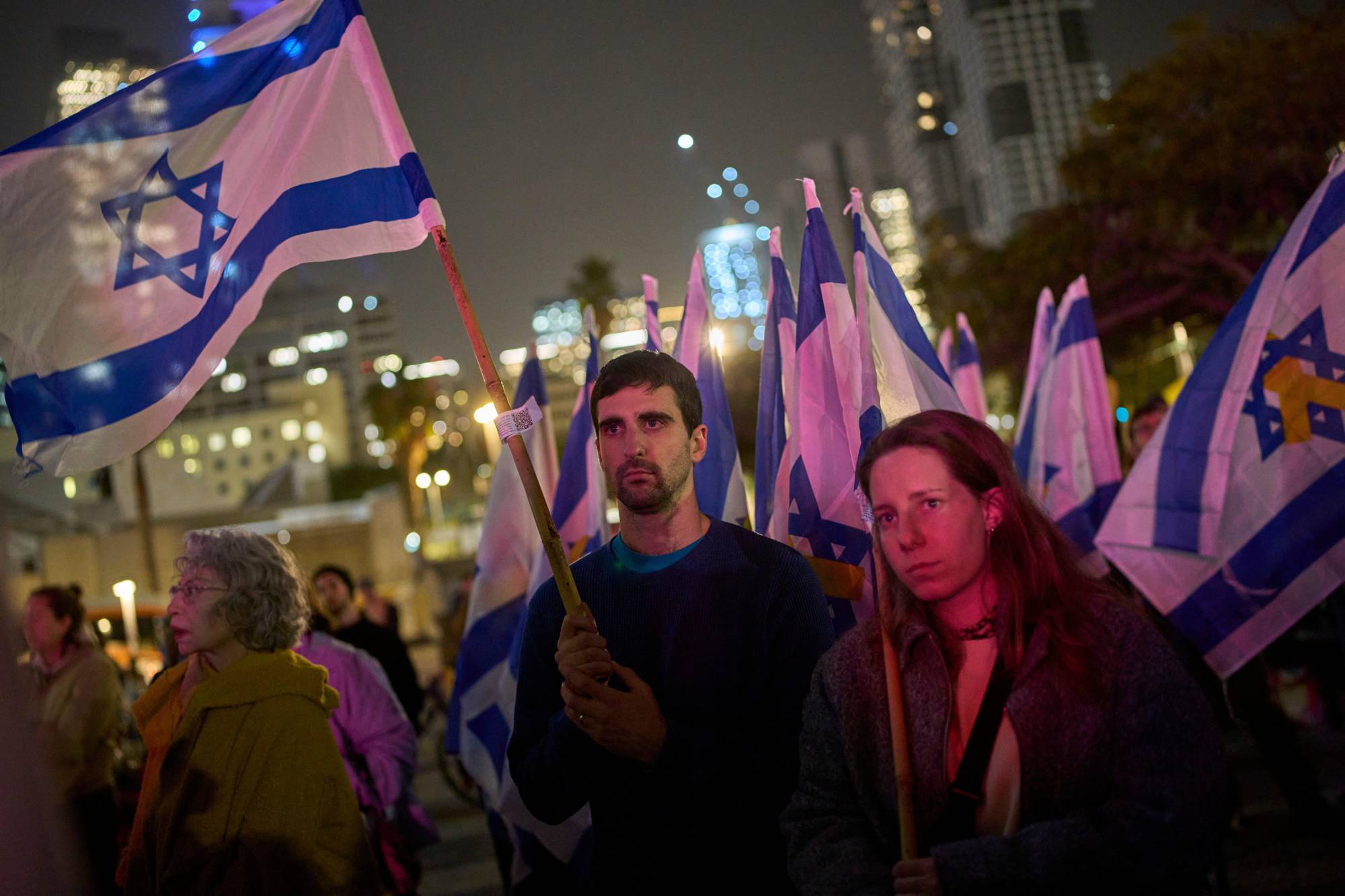 إسرائيليون في ساحة الرهائن في تل أبيب، إسرائيل 27 يناير 2026 (أ.ب)
