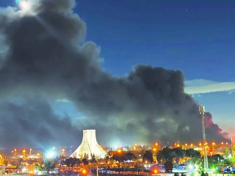 دخان يتصاعد من مطار مهر آباد غرب طهران فجر أمس (شبكات التواصل)