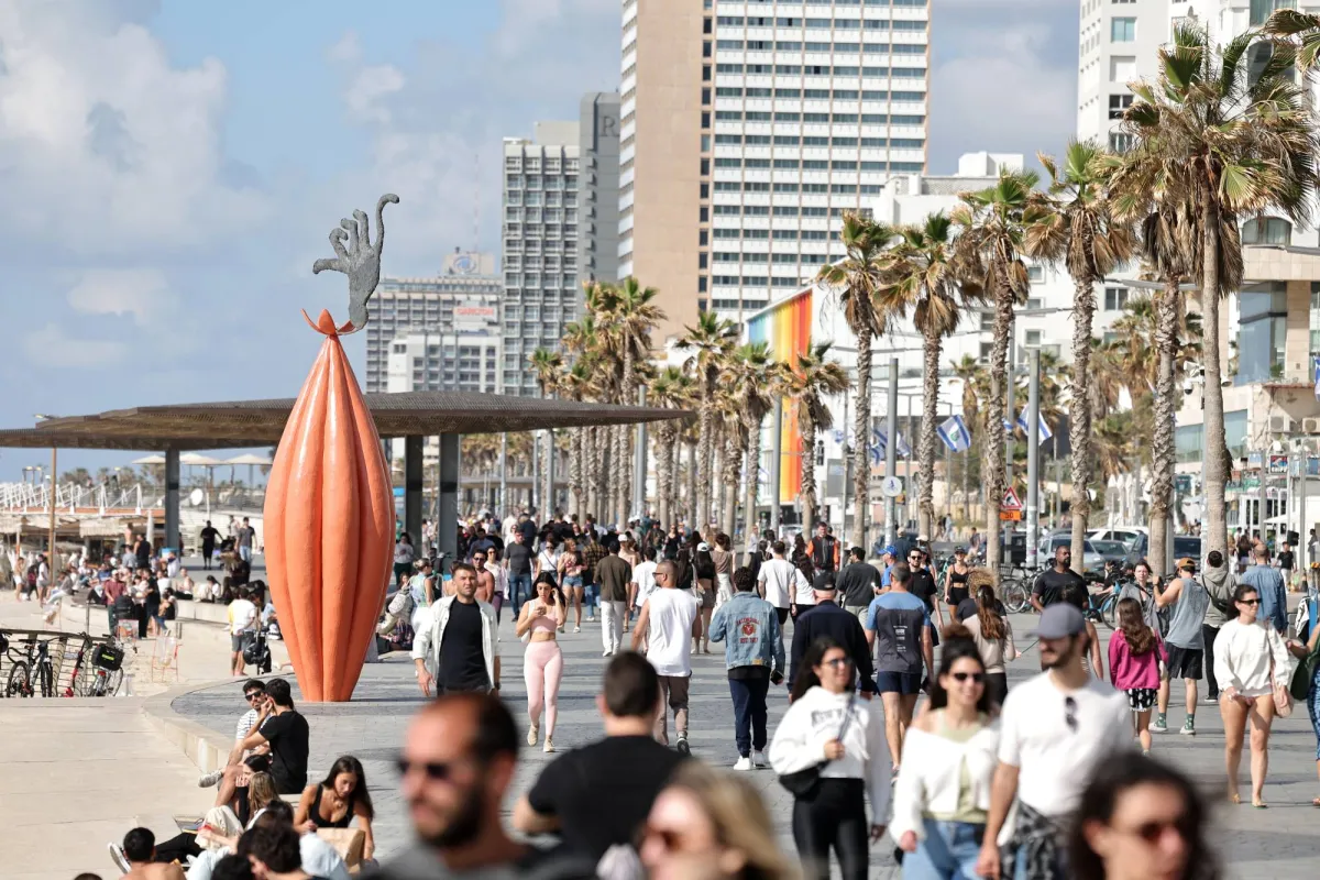 أشخاص يسيرون على طول ممشى بالقرب من الشاطئ في تل أبيب بإسرائيل 8 أبريل 2026 (إ.ب.أ)
