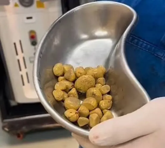 وفي مقطع فيديو على «إنستغرام»، استعرض أندرادي طبقاً مليئاً بحصوات صفراء كبيرة بينما كان المريض مستلقياً خلفه على طاولة العمليات.