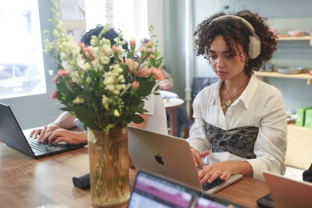 شابة تعمل داخل أحد المقاهي في نيويورك (أ.ب)