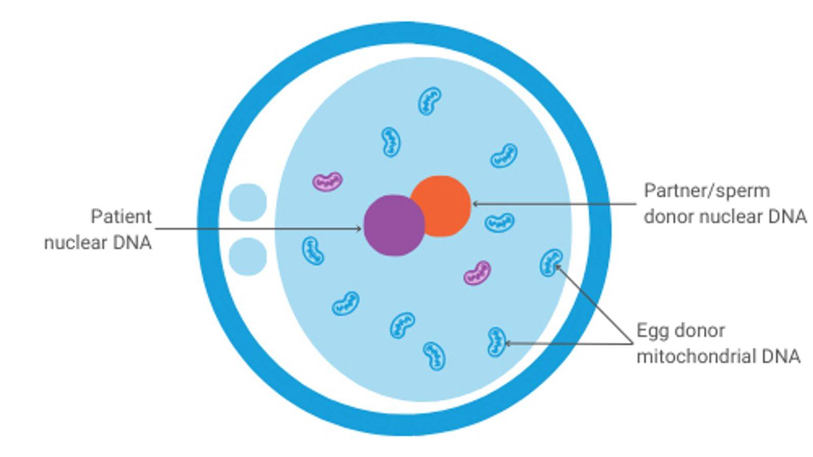 تحتوي الميتوكوندريا على كمية ضئيلة من شفرتها الجينية الفريدة، لذلك فإن الأجنة الناتجة تحمل الحمض النووي من ثلاثة أشخاص مختلفين.