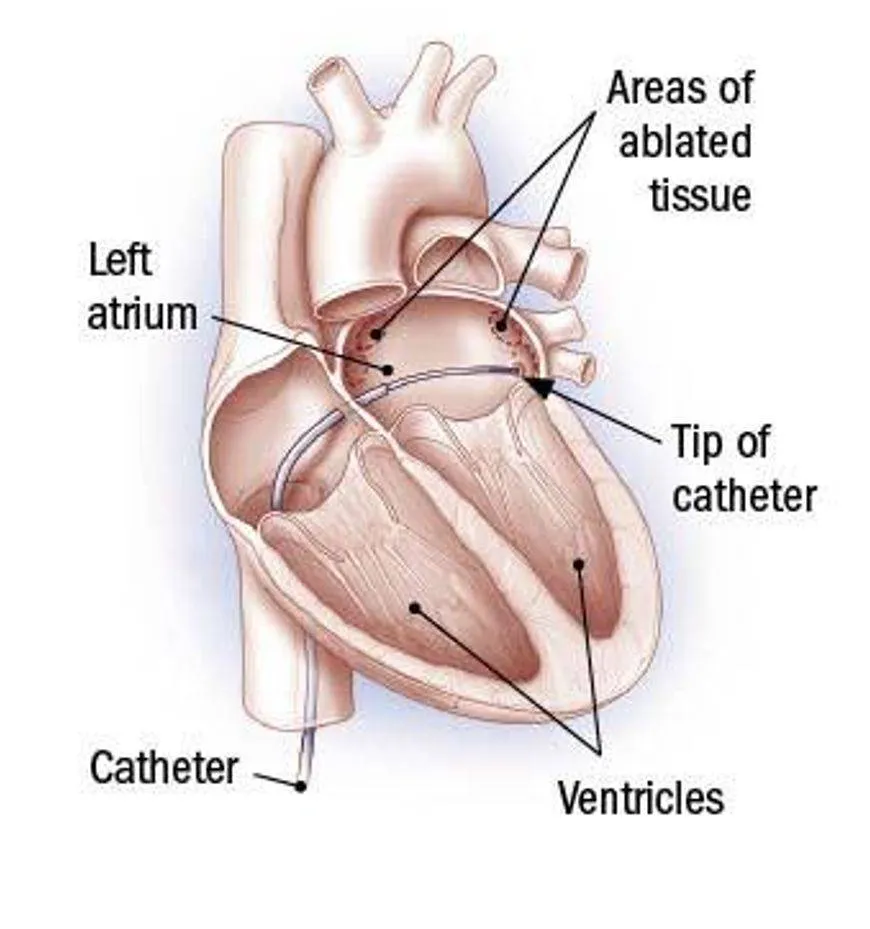 جدير بالذكر أنه في أثناء إجراء الاستئصال بالقسطرة لعلاج الرجفان الأذيني، يدخل الطبيب أنبوباً رفيعاً ومرناً (قسطرة) عبر وريد كبير حتى يصل إلى القلب. ويصدر جهاز في طرف القسطرة، طاقة تُحدث ندبات صغيرة في أنسجة القلب، تعمل على حجب الإشارات الكهربائية الشاذة، التي تُسبب اضطراب ضربات القلب.