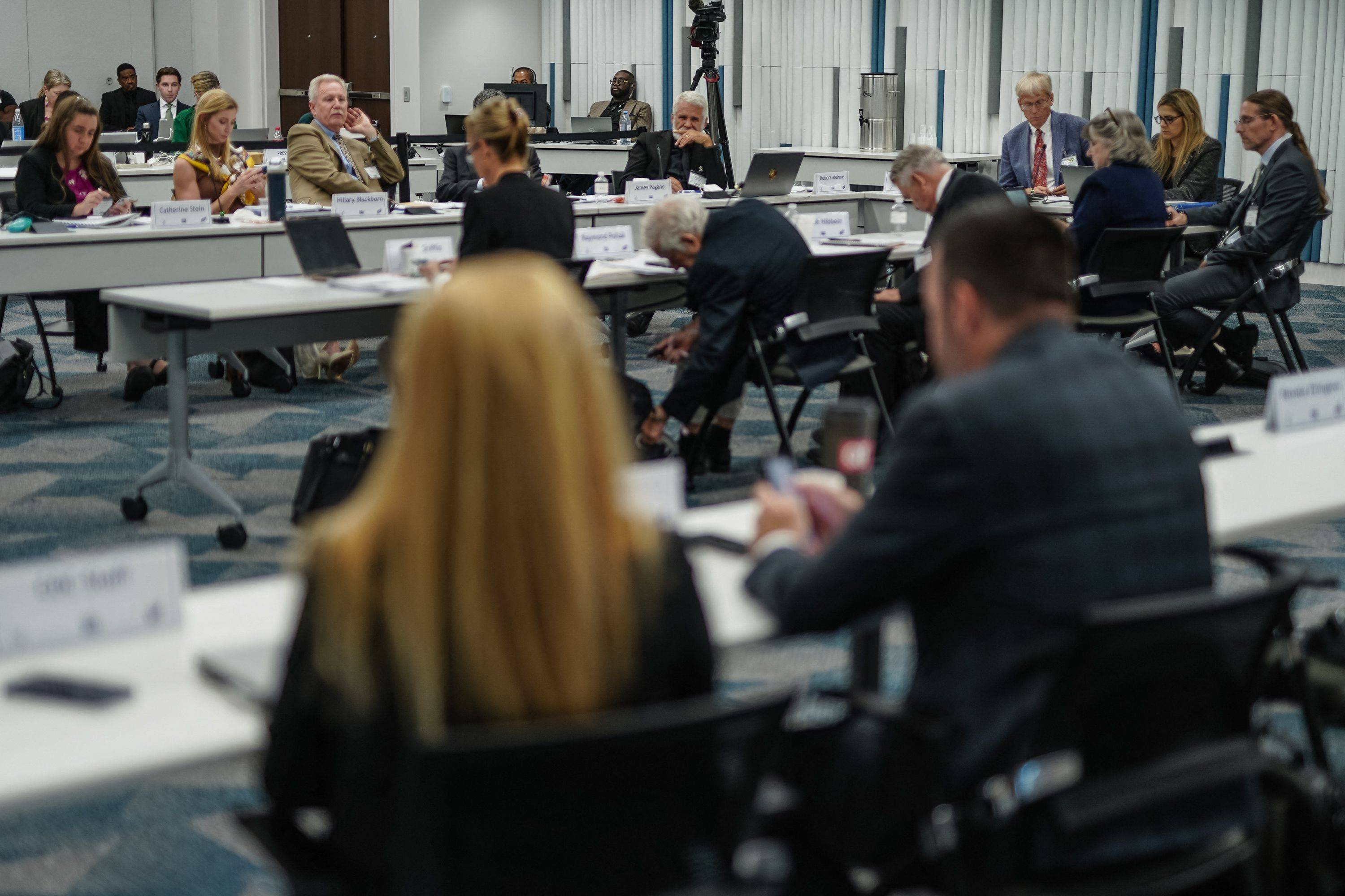 اللجنة الاستشارية لممارسات التحصين التابعة لمراكز السيطرة على الأمراض والوقاية منها تجتمع لمناقشة لقاحات «كوفيد-19» في جورجيا الأميركية (أ.ف.ب)