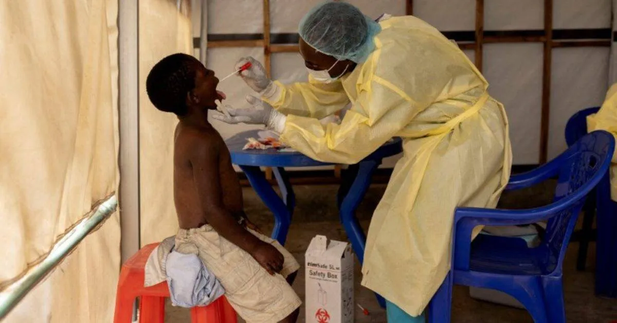 ممرض يأخذ عيّنة من طفل مشتبه في إصابته بمرض جدري القردة بجمهورية الكونغو الديمقراطية 19 يوليو 2024 (رويترز)