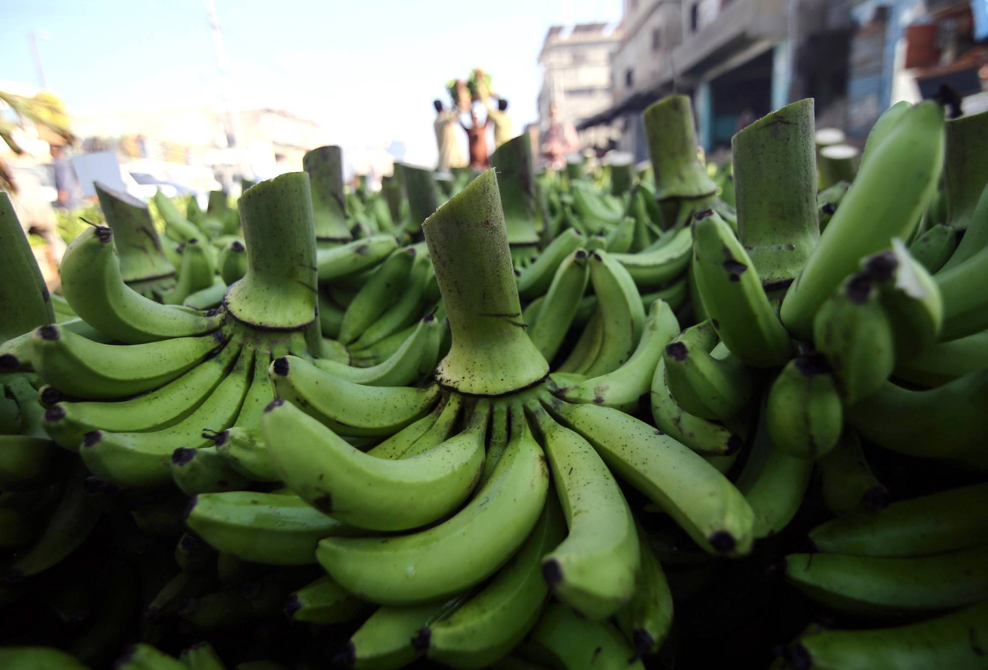 موز معروض للبيع في سوق الفاكهة بكراتشي في باكستان (إ.ب.أ)