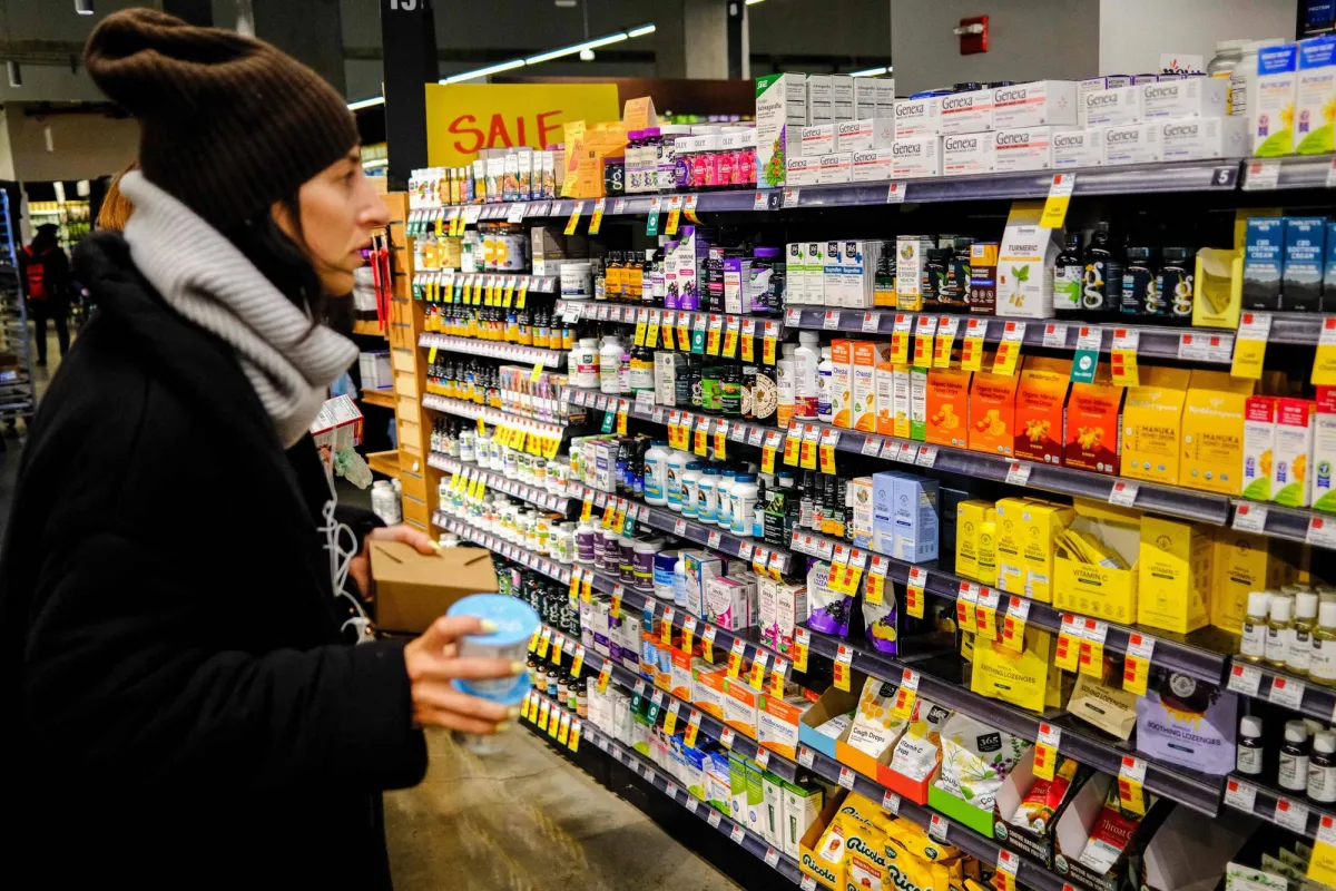 سيدة تتسوق لشراء فيتامينات من محل في نيويورك (أ.ف.ب)