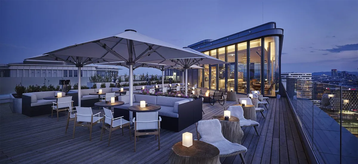 ومطعم أورورا، الذي يقع في الطابق السادس عشر، ويتميز بإطلالات بانورامية على أفق فيينا، ما يجعله وجهة مثالية لتناول الكوكتيلات والمأكولات الشهية في أجواء راقية.