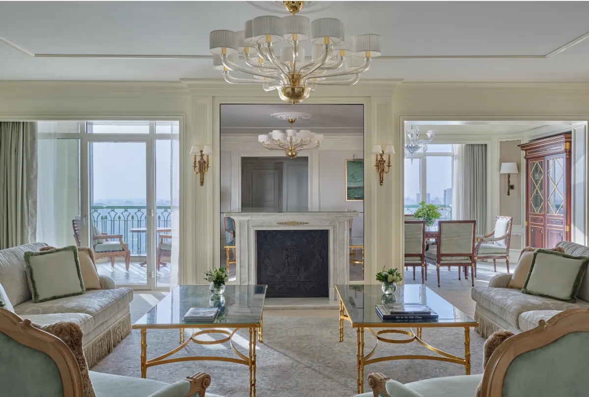 وفي قلب هذه التحولات، كشف الفندق عن أجنحته الرئاسية الفاخرة المرممة حديثاً، بتصميم من المصمم العالمي بيير-إيف روشون، مستوحى من جمال مصر الخالد. تتميز الأجنحة ذات الغرفتين بألوان هادئة من البيج والأخضر تعكس أجواء النيل والمناظر الطبيعية المحيطة، مع مساحات واسعة للمعيشة وتناول الطعام لتوفير توازن مثالي بين الأناقة والراحة. وتمتزج الديكورات الداخلية بين القوام الغني والتشطيبات الراقية مع الوظائف العصرية، ما يجعلها ملاذاً هادئاً وسط أجواء المدينة النابضة بالحياة، مع تراس فسيح يطل على النيل، مثالي للاستمتاع بغروب الشمس.