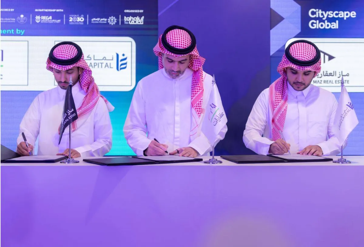 شهد معرض «سيتي سكيب» العقاري توقيع شركة «ماز العقارية» اتفاقيات استراتيجية مع شركة «نما كابيتال» وشركة «عقارات»، بقيمة إجمالية تتجاوز 1.240 مليار ريال (331 مليون دولار)، بهدف إطلاق صناديق عقارية نوعية وتطوير مشروع مميز في إحدى المناطق الحيوية بمدينة الرياض، بما يدعم نمو القطاع العقاري الوطني ويعزز استدامة مشاريعه المستقبلية.