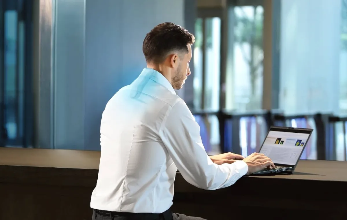 وشريط الرقبة مرن لضمان ملاءمة أفضل وثبات أكبر، إذ إن مرونته وقابليته للتعديل تضمنان راحة تامة حتى عند ارتدائه لفترات طويلة خلال اليوم، سواء كنت جالساً أو تتحرك. كما أن التصميم المنحني للجزء المعدني الذي يلامس أسفل رقبة المستخدم يتماشى بشكل أفضل مع منحنيات الرقبة، مما يضمن اتصالاً فعالاً ومستمراً لتحقيق أقصى قدر من الأداء.