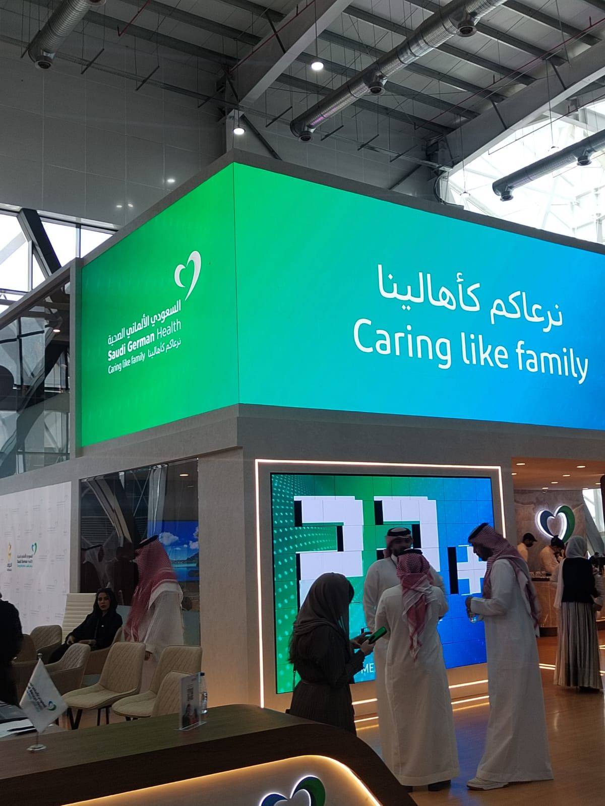 ضمن جناحه المتخصص، استعرض مستشفى الملك فيصل التخصصي ومركز الأبحاث مجموعة من الحلول الصحية المتقدمة، أبرزها برامج الجراحة الروبوتية، والتخطيط الجراحي لصرع الدماغ، وزراعة الكبد والأمعاء الدقيقة. كما عرض التخصصي برنامج التشخيص الوراثي للأجنة، وتقنيات إنتاج الخلايا التائية، ومرافق التصنيع الدوائي، إلى جانب توظيف الواقع الافتراضي في التعليم الطبي، مما يعكس ريادته في دمج الذكاء الاصطناعي بالتخصصات الدقيقة.