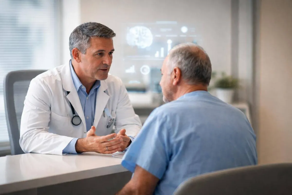 طبيب يتناقش مع مريض حول صحة البروستاتا