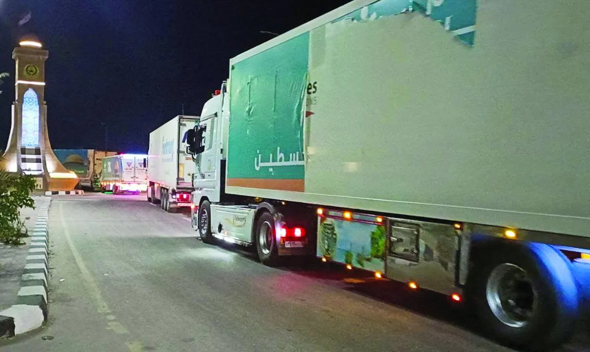 شاحنات عند خط الحدود بين سيناء وقطاع غزة (رويترز)