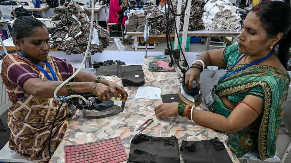 عاملتان في مصنع ملابس بولاية مهاراشترا الهندية (آ ف ب)