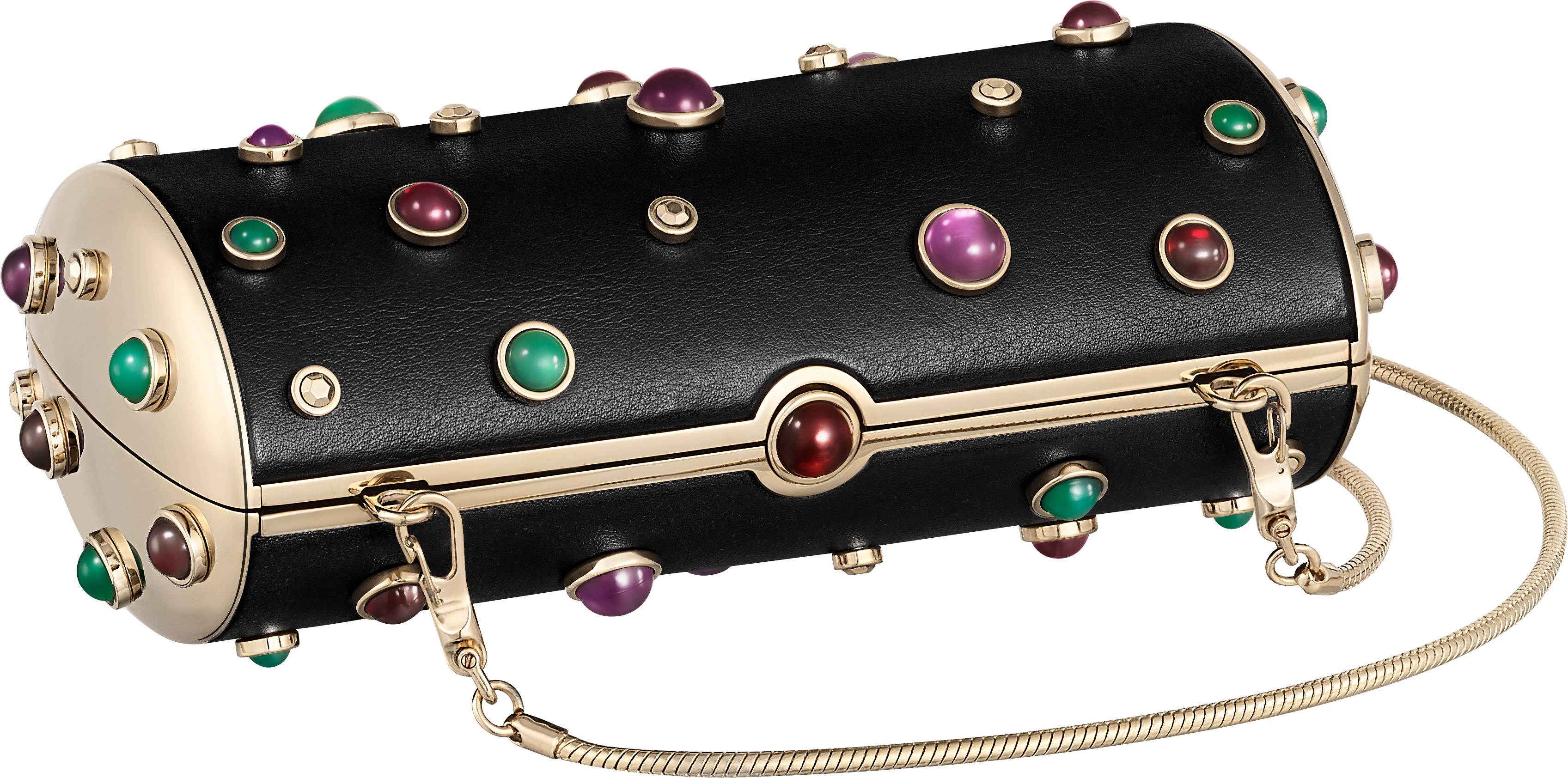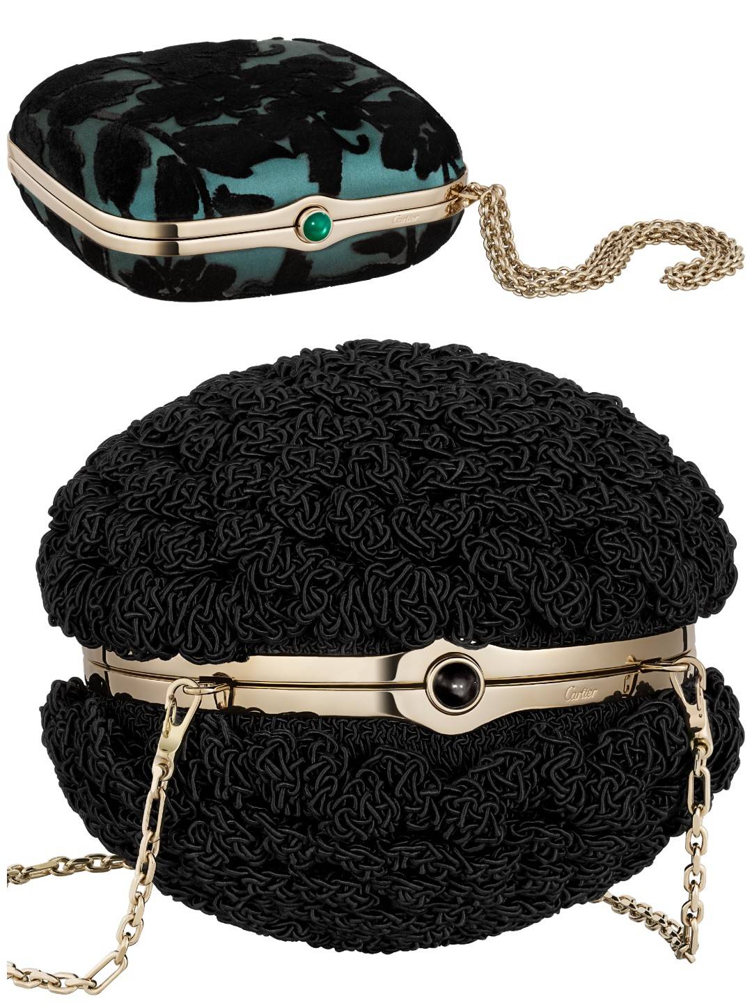 أربع حقائب مسائية فقط، كانت كافية لاستعراض قدراتها في صياغة الجمال. تتنوع بأشكالها الأسطوانية أو الشبيهة بالكرة أو الوسادة، ومشابكها المرصّعة بأحجار كابوشون من العقيق اليماني أو عقيق هيسونيت أو السبج على أقسام داخلية من جلد العجل المخملي. منها ما يستحضر مجموعة «كاكتوس دو كارتييه» الأيقونية التي صُنعت هنا من الساتان بتأثير مخملي لتبرز زخرفة الأزهار أو مجموعة «توتي فروتي» التي تجسدت هذه المرة من جلد العجل المرصّع بأحجار كابوشون من الأماتيست أو عقيق هيسونيت أو العقيق اليماني الأخضر.