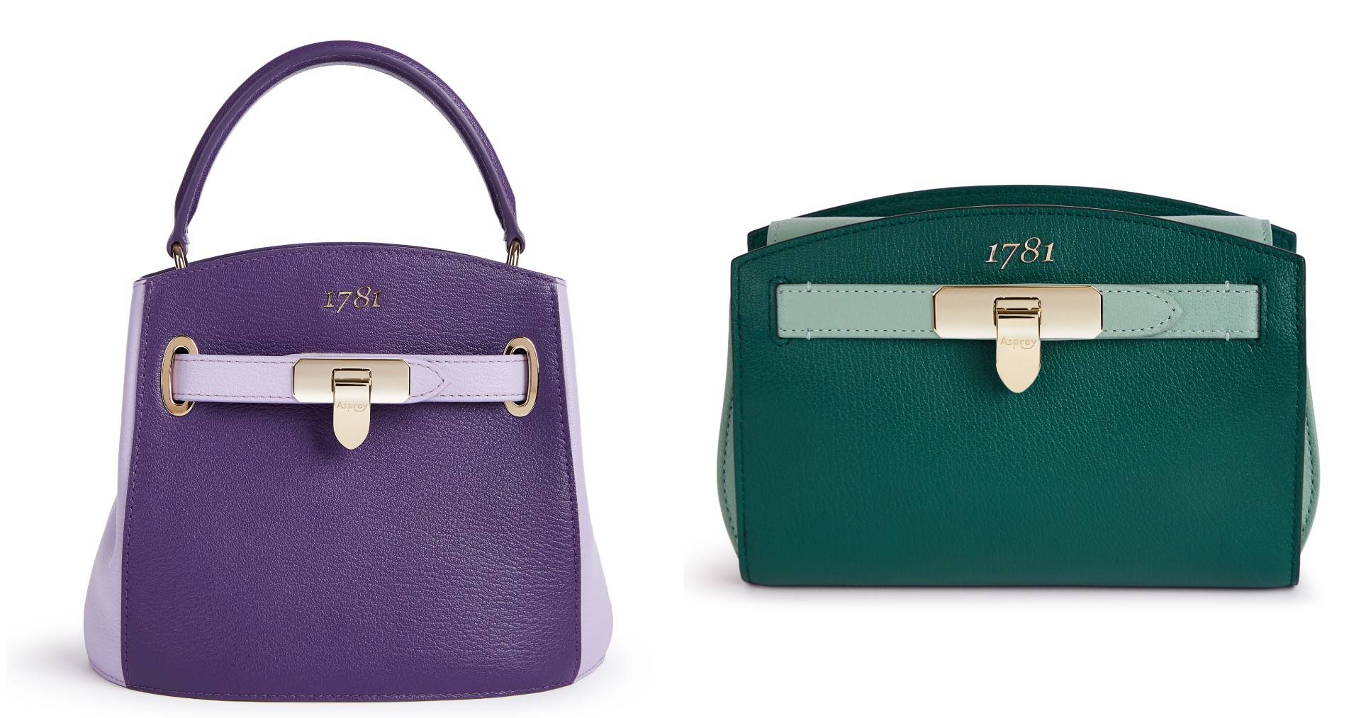 حقيبة بسيطة ثنائية اللون بتصميم منحوت. هذا الموسم أطلقتها الدار مرة أخرى بألوان مستوحاة من الريف الإنجليزي تعكس ألوان حقول اللافندر، وخضرة الغابات، وأبيض ويمبلدون، وكأنها ترفض الخروج عن بيئتها الإنجليزية وتاريخها الأرستقراطي.