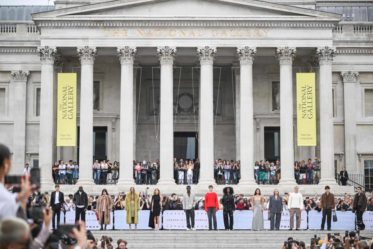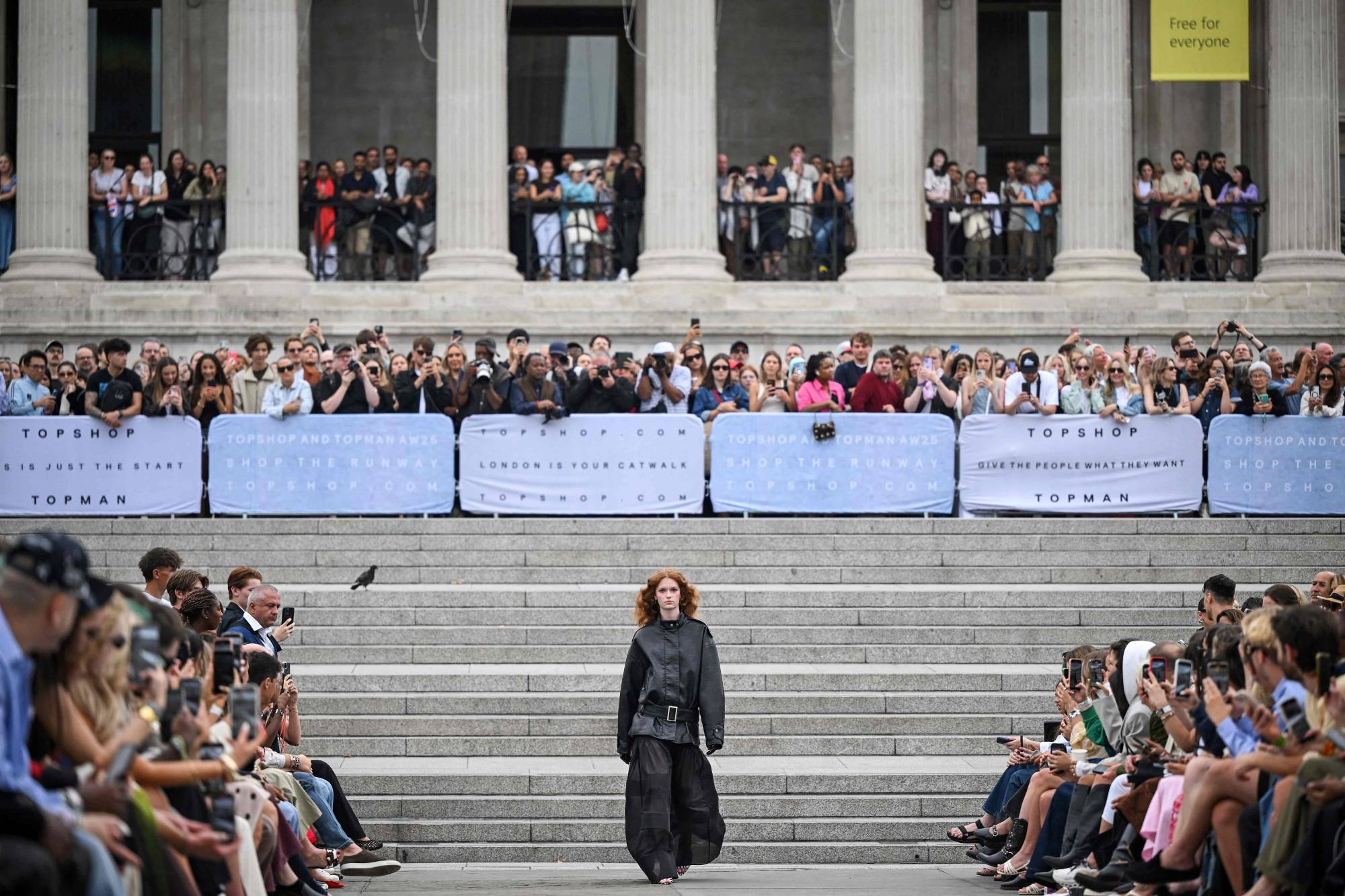 بشرى لكل من تحسَر وانتابه الحزن عندما أغلقت محلات «توب شوب» البريطانية أبوابها بسبب جائحة «كورونا» والأزمة التي طالت قطاع التجزئة عموماً. فها هي تبدأ مرحلة جديدة لاستعادة مكانتها على خريطة الموضة وسنواتها الذهبية، بعرض ضخم قدمته يوم السبت الماضي في ميدان الطرف الأغر، «ترافالغار سكوير» بلندن، أمام المارة وحشد كبير من الشخصيات وعلى رأسهم عمدة لندن، صادق خان.