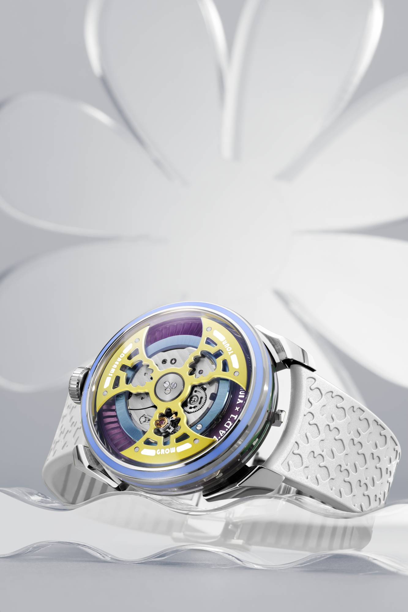 كانت «ماد إيديشنز» البيئة المثالية لهذا التعاون، لأنها بروحها الشبابية تحتمل الألوان الصارخة. والنتيجة كانت 3 ساعات تحمل اسم «Grow Your Dreams»: فلسفة إيلوري في الحياة والفن. أُطلق على كل ساعة اسم خاص: الشمس، والطبيعة، والماء - 3 إصدارات محدودة، يضمّ كل منها 400 قطعة.