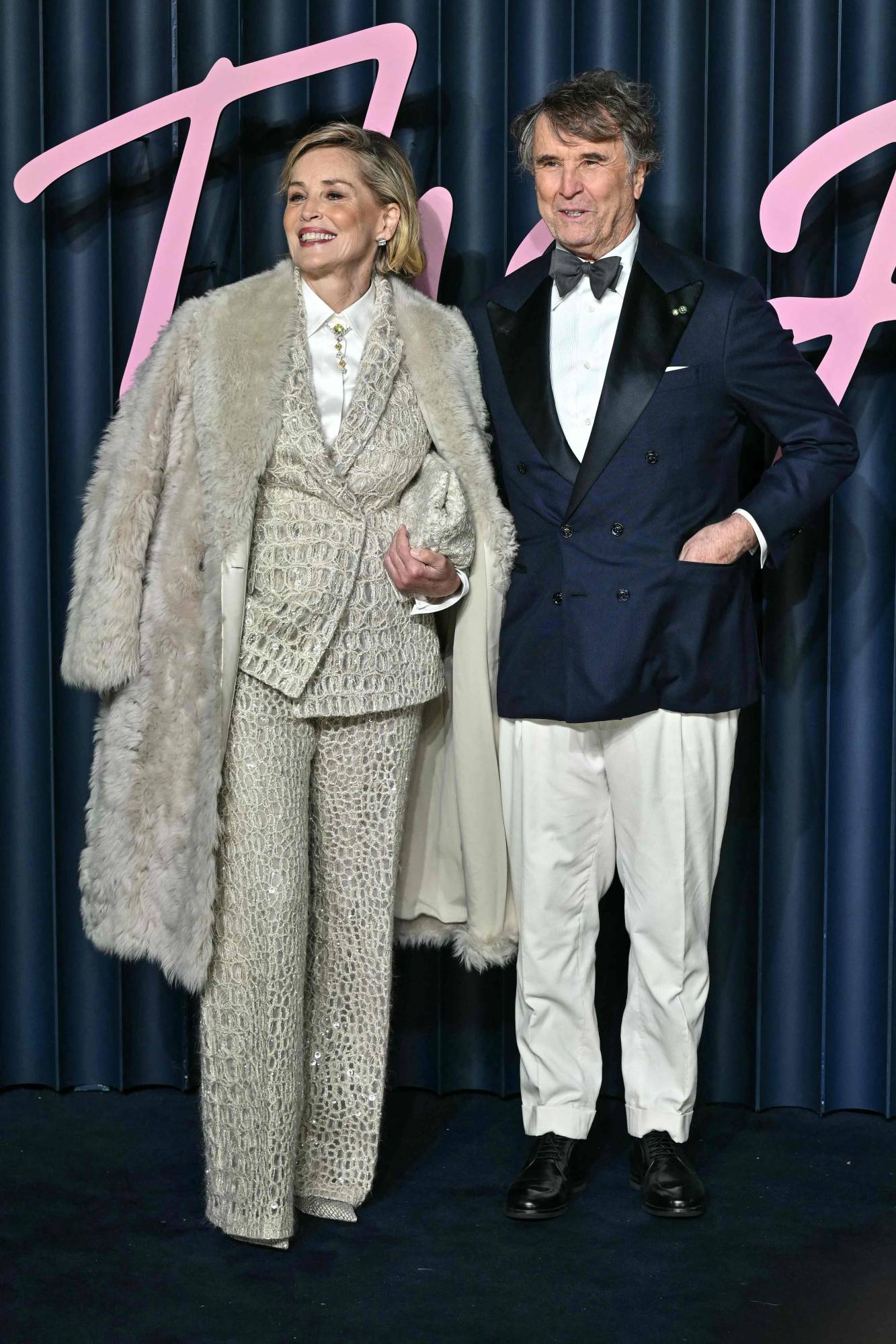 شارون ستون وبرونيلو كوتشينلي قبل دخولهما قاعة الحفل (أ.ف.ب)