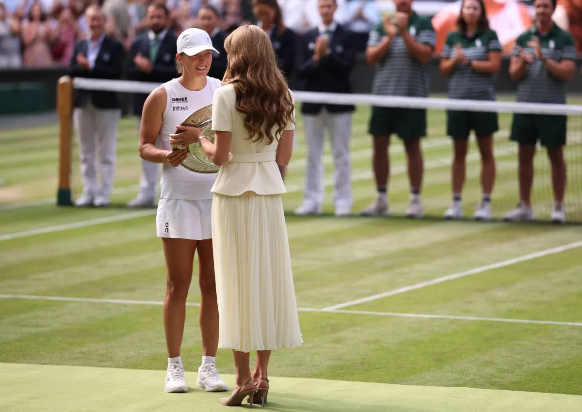 أميرة ويلز تسلم كأس دورة ويمبلدون للبولندية إيغا شفيونتيك (أ.ف.ب)