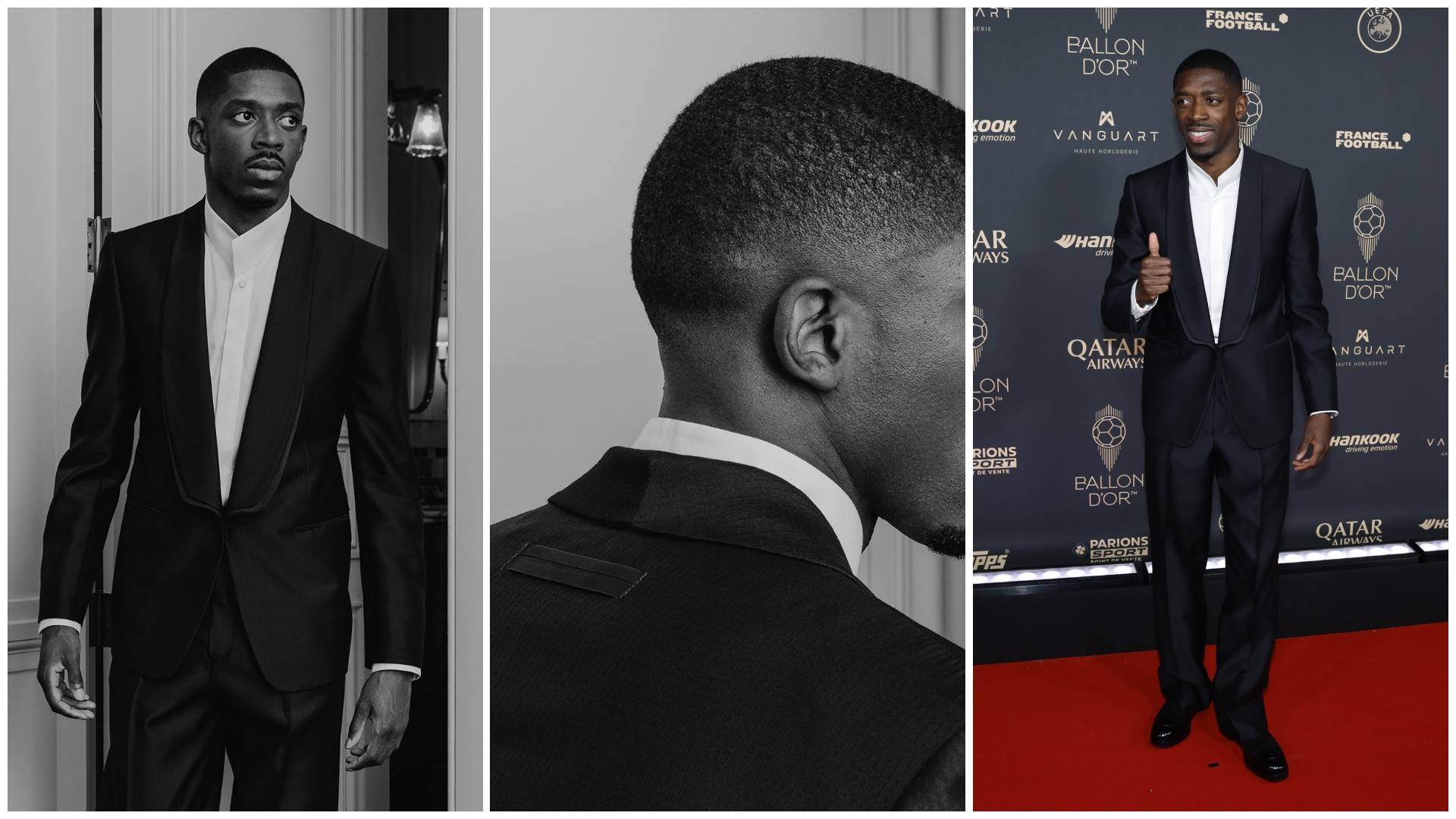 قبل أيام وزَّعت دار «زينيا» الإيطالية صوراً بالأبيض والأسود لعثمان وهو يُحضِّر نفسه لهذه المناسبة. وعندما حلّت الليلة المنتظرة، وصل وهو في غاية الأناقة كأنه عارض أزياء من الصف الأول. البدلة التي صُممت له خصيصاً في مشاغل «زينيا» Zegna كانت دليلاً آخر على البراعة الحرفية للدار. جمعت بين الرسمية الكلاسيكية وروح «رياضية» تجلَّت في استغنائه عن ربطة العنق أو «البابيون» واكتفائه بإبراز جمال الياقة المبتكرة. في هذا الصدد صرح ديمبيلي بأن المناسبة «الاستثنائية» تستحق اختياره «بدلة تروي قصة جهد جماعي ودقة وشغف لكل ما يُصنع بحب واهتمام».