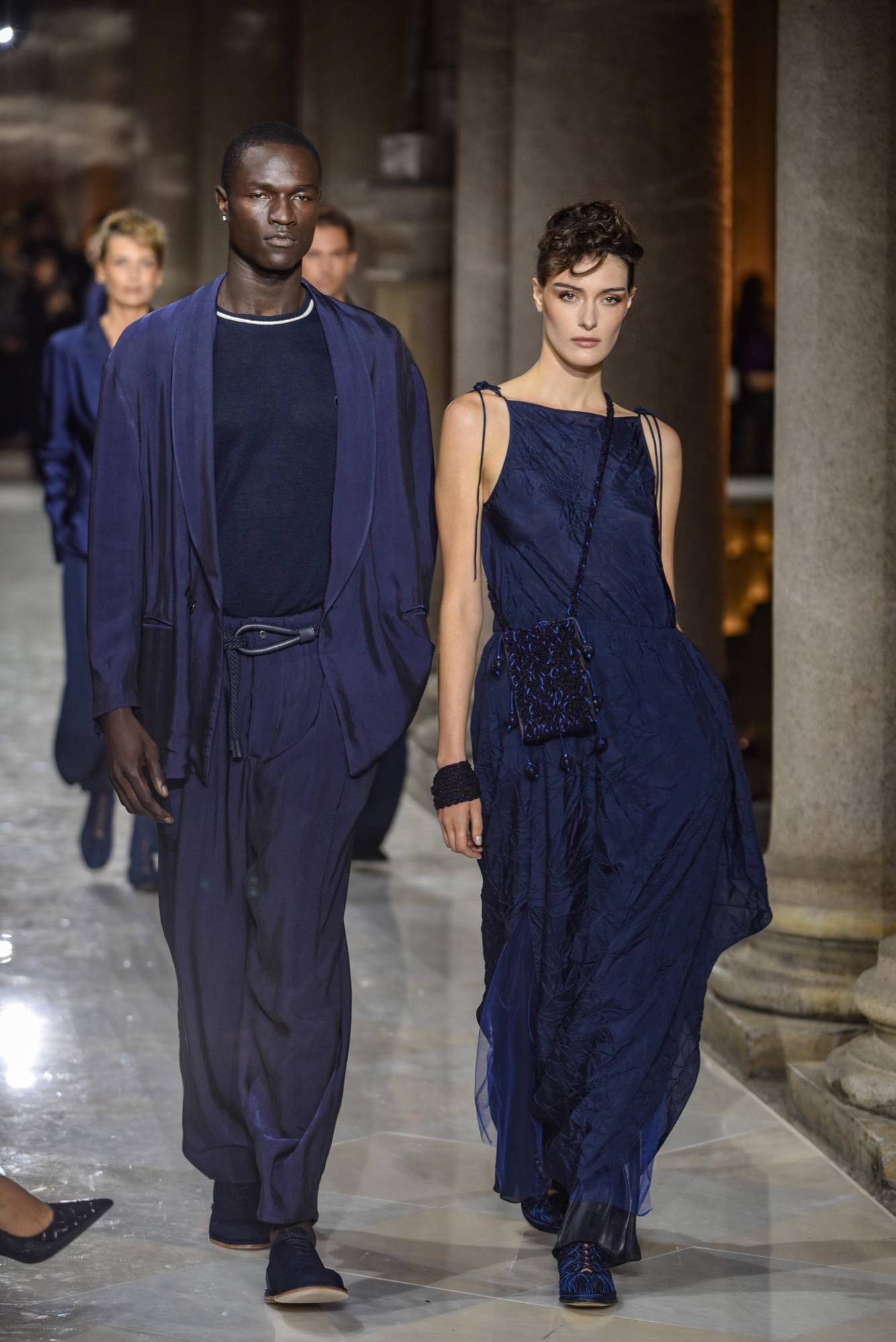 تضمنت العروض مجموعة من البدلات الكلاسيكية والفساتين اللامعة، بألوان محايدة من الأخضر والأزرق والأرجواني، مجسدةً الضوء والأرض والبحر. حرصت الدار أيضاً أن تستعين بعارضين وعارضات عملوا مع المصمم على مدى العقود الخمسة الفائتة، نذكر منهم أجنيسي زوجلا، إحدى العارضات المفضلات لدى المصمم. كان هذا ضرورياً «لتجسيد رؤيته للمرأة»، وفق البيان الصحافي.
