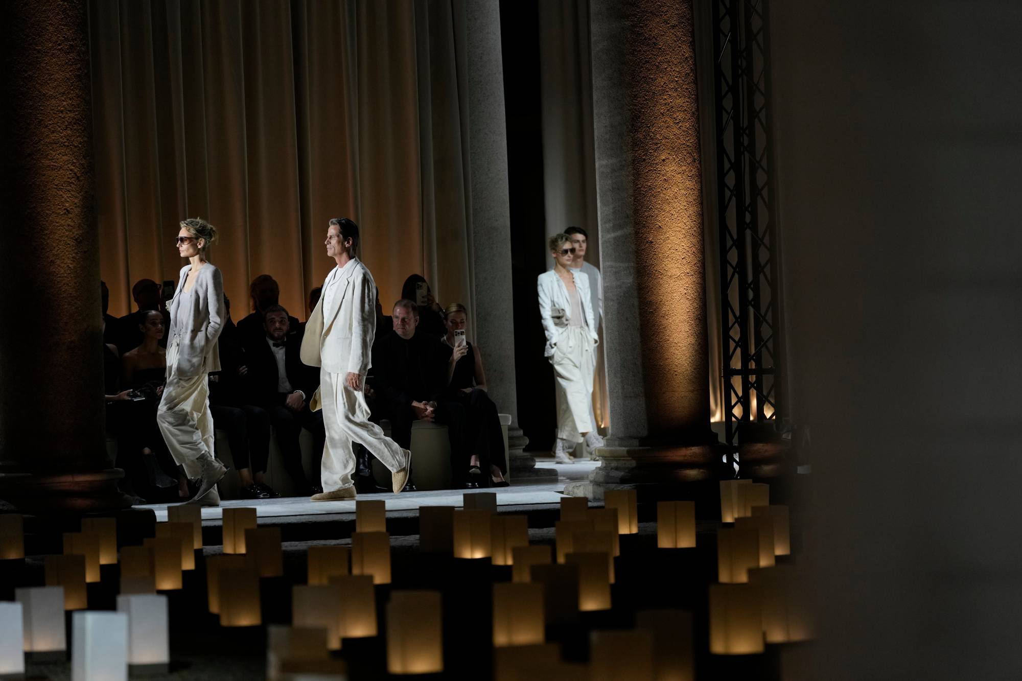 كان من المفترض أن يكون عرضه لربيع وصيف 2026 احتفالاً بـ50 عاماً من العطاء، تُستعرض فيه ما جاد به خيال الراحل جورجيو أرماني على مدى خمسة عقود. لكن وبعد وفاته في الرابع من سبتمبر (أيلول) عن 91 عاماً، تحول العرض إلى ما يشبه حفل تأبين من نوع خاص يليق بمبدع أثرى ساحة الموضة، في حضور نخبة من النجوم الذين تعاونوا معه في فترة من الفترات، من بينهم غلين كلوز، وريتشارد غير، وكيت بلانشيت، وسامويل إل جاكسون، وجيمس نورتون، وتوني سيرفيلو، وتشانغ زيي، بالإضافة إلى المخرج سبايك لي الذي وصف أرماني بأنه «رجل عصر النهضة». كلهم حضروا بملابس سهرة من تصميم الدار الإيطالية.