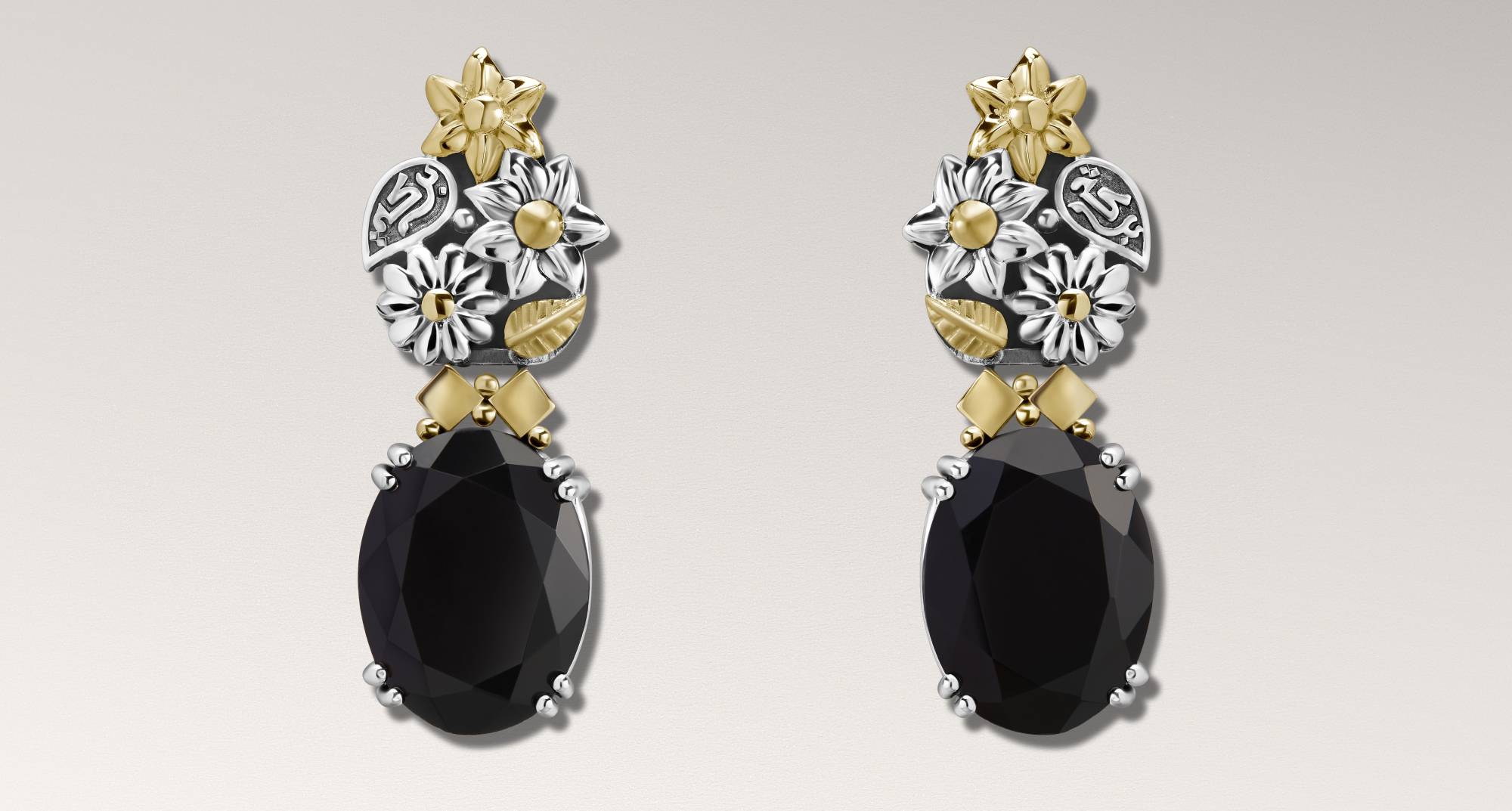 أقراط أذن مزينة بالأحجار وباقة ورود (عزة فهمي)