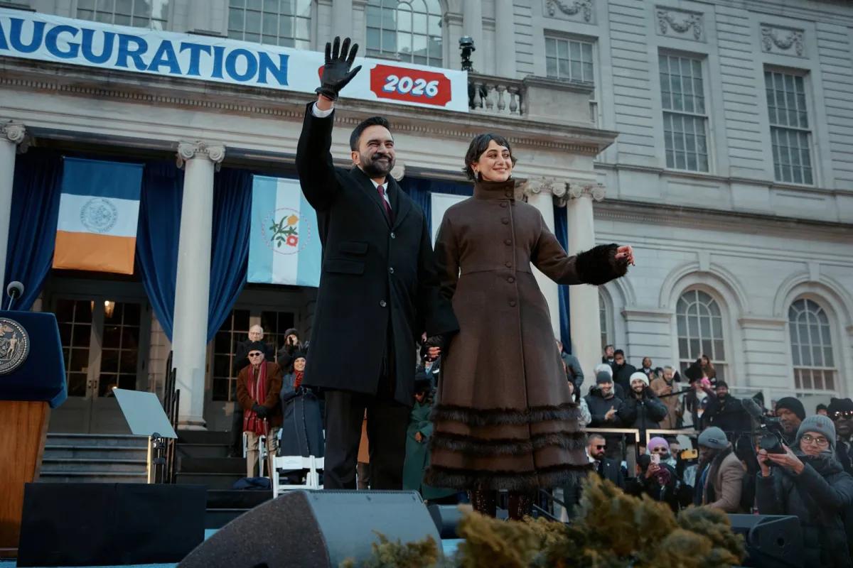 من المكان إلى الأزياء والأكسسوارات، كانت كل التفاصيل محسوبة ومدروسة بعناية فائقة تؤذن بعهد ديناميكي. وبالطبع، الحديث عن الأزياء يجرنا تلقائياً إلى حضور راما دواجي، زوجة ممداني، أو سيدة نيويورك الأولى حالياً. وكعادتها رافقته بصمت مطبق، تاركة الكلام كله لإطلالتها.