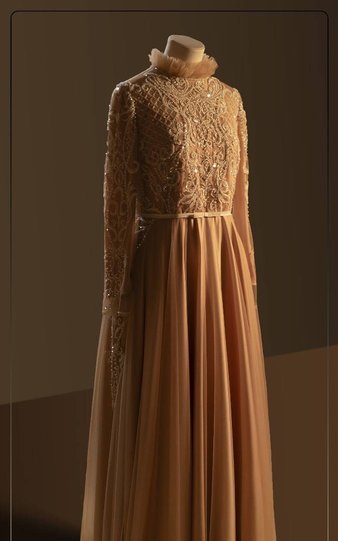 تراعي المصممة أن تدمج الأناقة والبريق بالحشمة (فيرا)