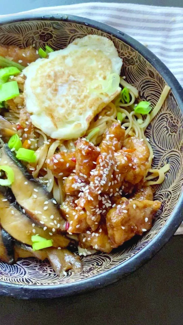 نودلز الدجاج بالمشروم والسمسم واحد من الأطباق الرئيسية الأخرى التي تقدمها الشيف المصرية على مدونتها «cuisine_ de_ maha».