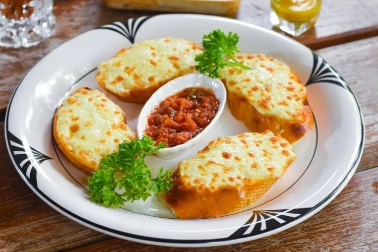 نقطع الباغيت إلى دوائر، وندهن كل قطعة بخليط مكوّن من الثوم المهروس والبقدونس المفروم والزبدة، ثم شريحة من جبن الموزاريلا، وندخلها إلى الفرن لمدة 15 دقيقة، حتى يحمرّ الخبز ويذوب الجبن. يقدّم الطبق ساخناً.