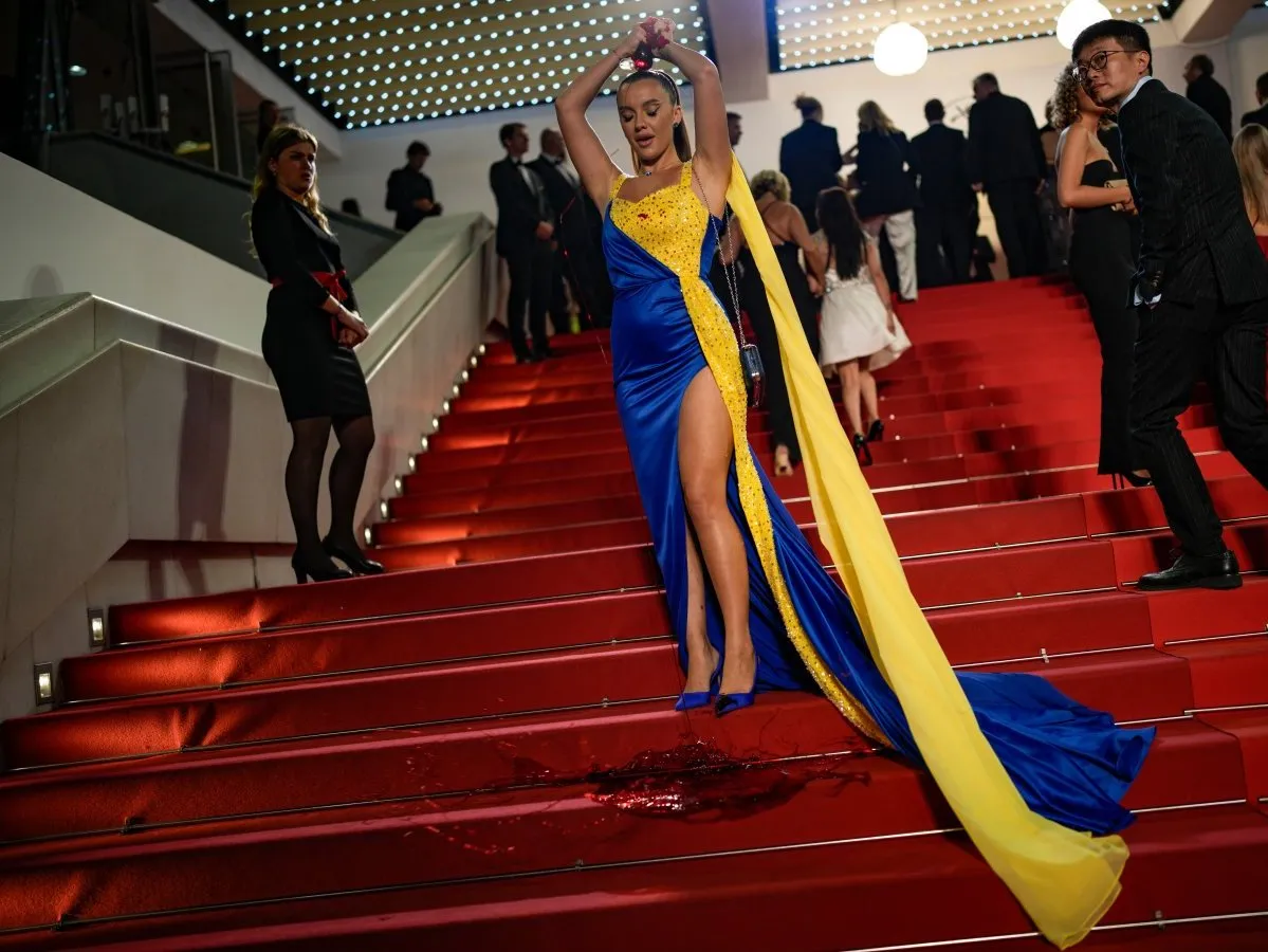 اقتحمت امرأة ترتدي فستاناً بلونَي العلم الأوكراني السجادة الحمراء في مهرجان كان السينمائي مساء أمس (الأحد)، ثم سكبت على نفسها سائلاً أحمر مشابه للدماء، قبل أن يُخرجها رجال الأمن من المكان، على ما أفاد صحافيو وكالة «فرانس برس».