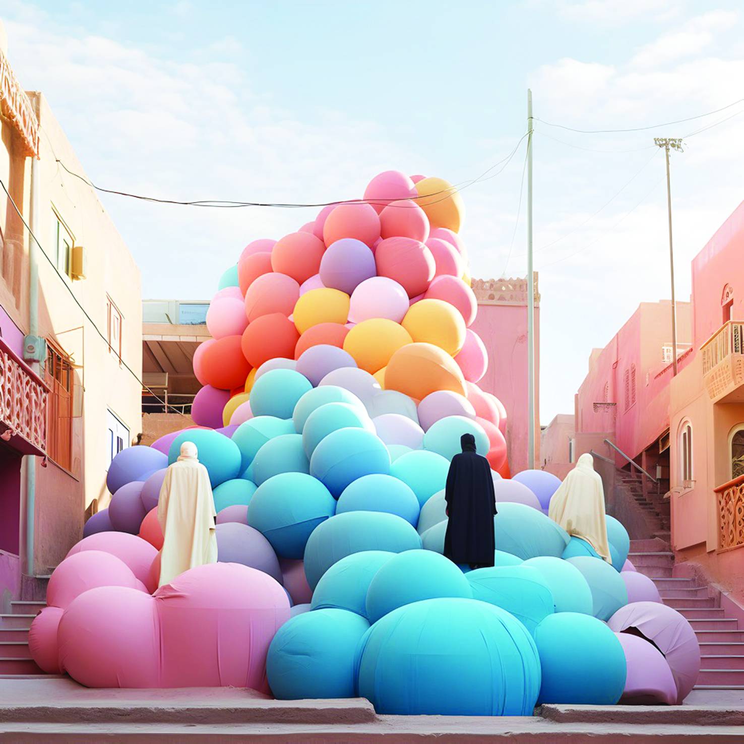 ويأتي تركيزها على المواقع الفريدة في السعودية بعد انغماسها في المشهد الفني المحلي لمدينة دبي (حيث تقيم)، لتطوّر أسلوبها الفني وتنسج الحكايات من خلال أعمال جديدة ولافتة، تجمع البالونات المضيئة، والأقمشة الملونّة، والمجسمات الضخمة التي تحاول محاكاة البعد التاريخي للمكان، واستنطاقه بصورة عصرية وروح مستقبلية، كما شاركت الفنانة أيضاً في إنشاء تراكيب ومنحوتات ومشاريع فنية عامة، مما يُظهر شغفها بالانغماس في تاريخ الصحراء.