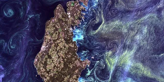 العوالق النباتية الخضراء في غوتلاند، أكبر الجزر السويدية (ناسا)